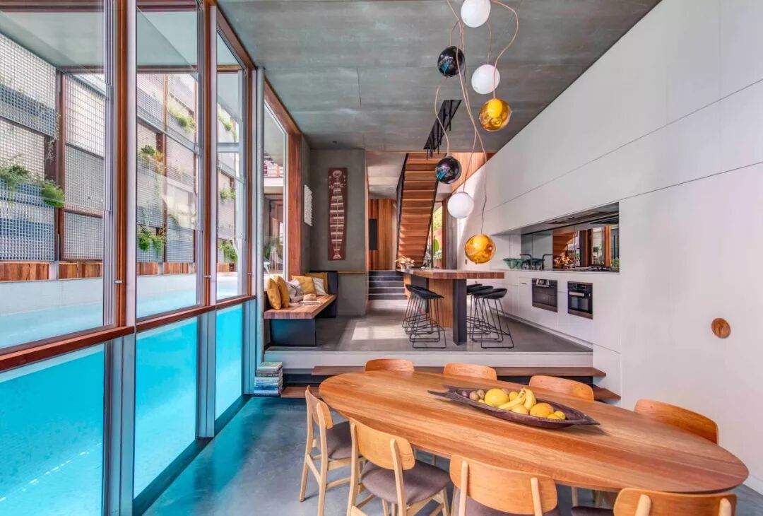 这个房子位于悉尼东郊,室内设计中同样将泳池作为一部分背景向人们呈现。