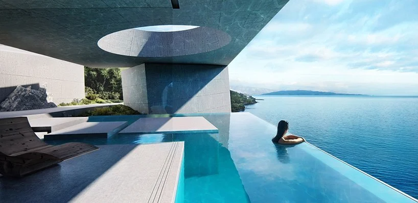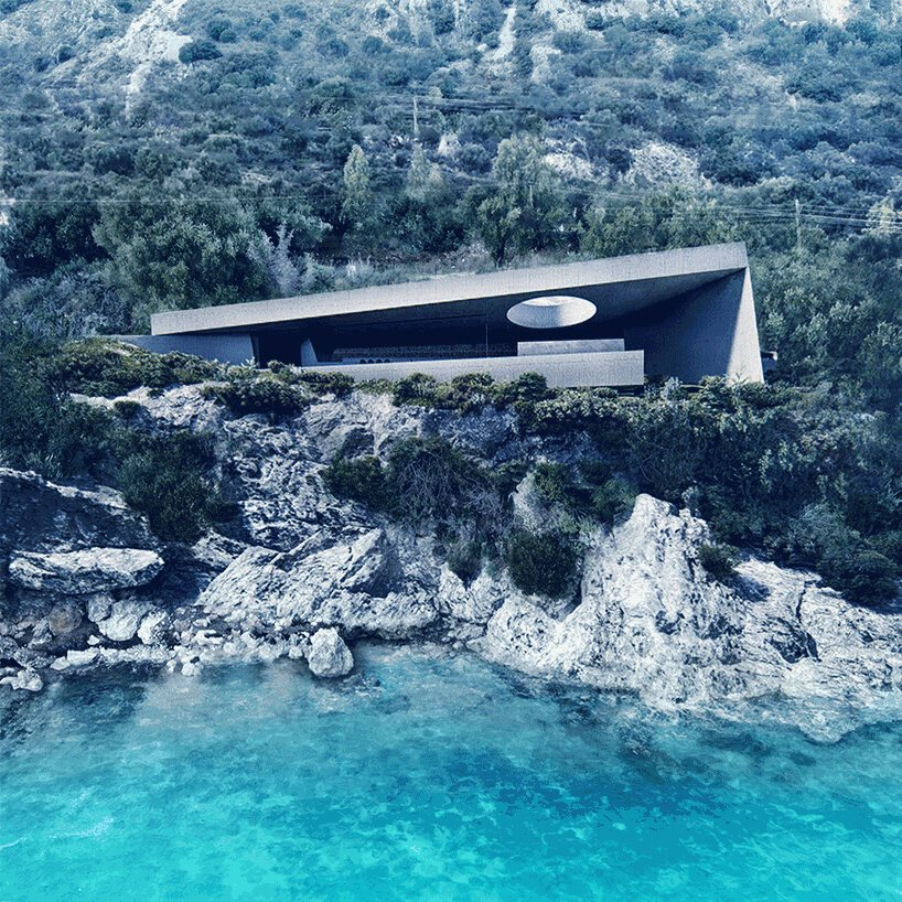 这个「水上别墅位于希腊,是 konstantinos stathopoulos 做的一个概念设计,整个房子呈不规则造型,混凝土外立面更是与周围的礁石形成一定呼应。