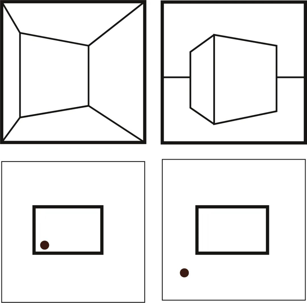 透明性理论的探究不仅是建筑与绘画的关系,更是二维平面组织与三维空间感知的研究,就涉及到二维平面空间感知与三维空间感知的异同的问题。二维画面空间的感知与格式塔心理学联系紧密;对于三维空间的感知,拉斯姆森的《体验建筑》一书中也基于图底关系描述了两种基本的三维空间类型——洞穴与实体。