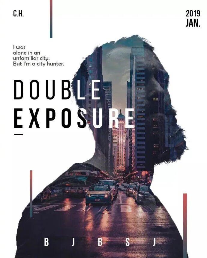 双重曝光原本是胶片单反时代的一个摄影技巧,即通过在同一张底片上进行多次曝光,达到多张图片叠加在一起的效果。双重曝光在视觉上有一种超现实的梦幻感觉,视觉冲击力很强,而且可以比较简单、快捷地在Photoshop中做出此效果,所以受到了平面设计师的广泛喜爱。