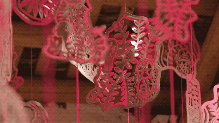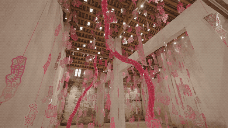 陈粉丸作品:《阿墙》 艺术家以那些剥落的墙皮的形状灵感,用纸张雕刻的形式复刻出来。