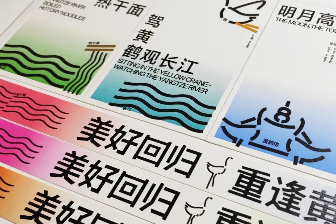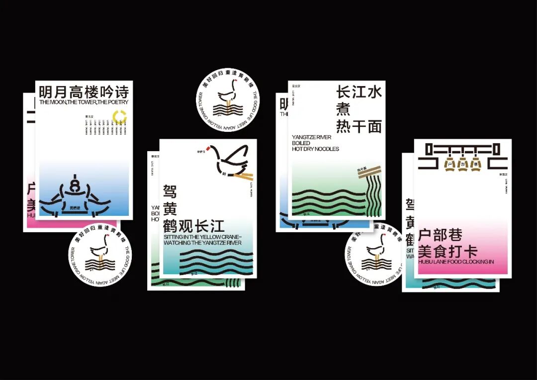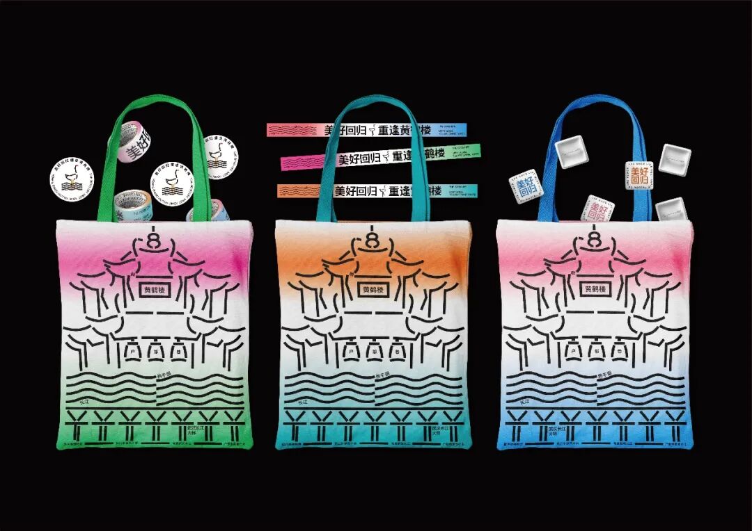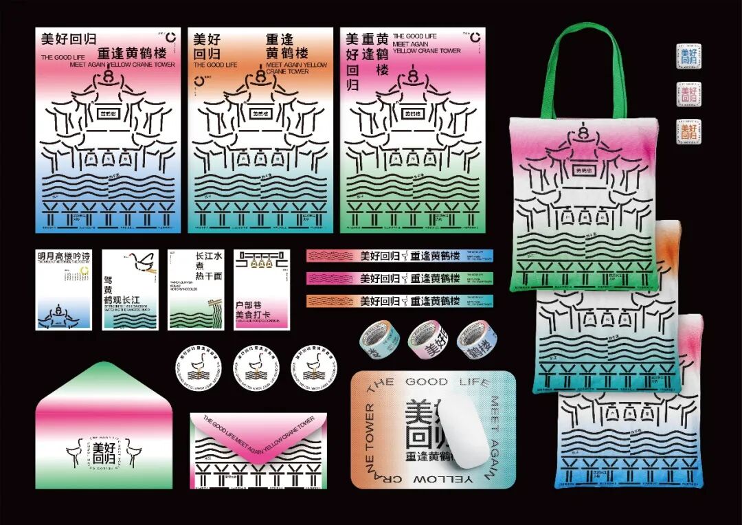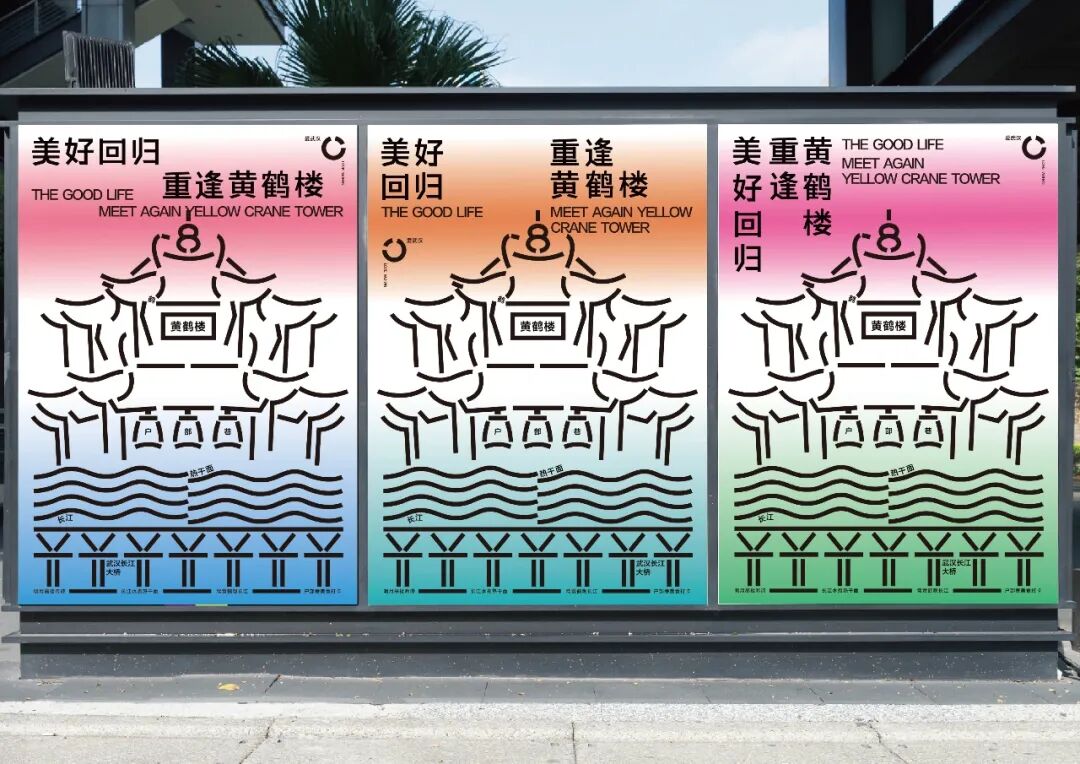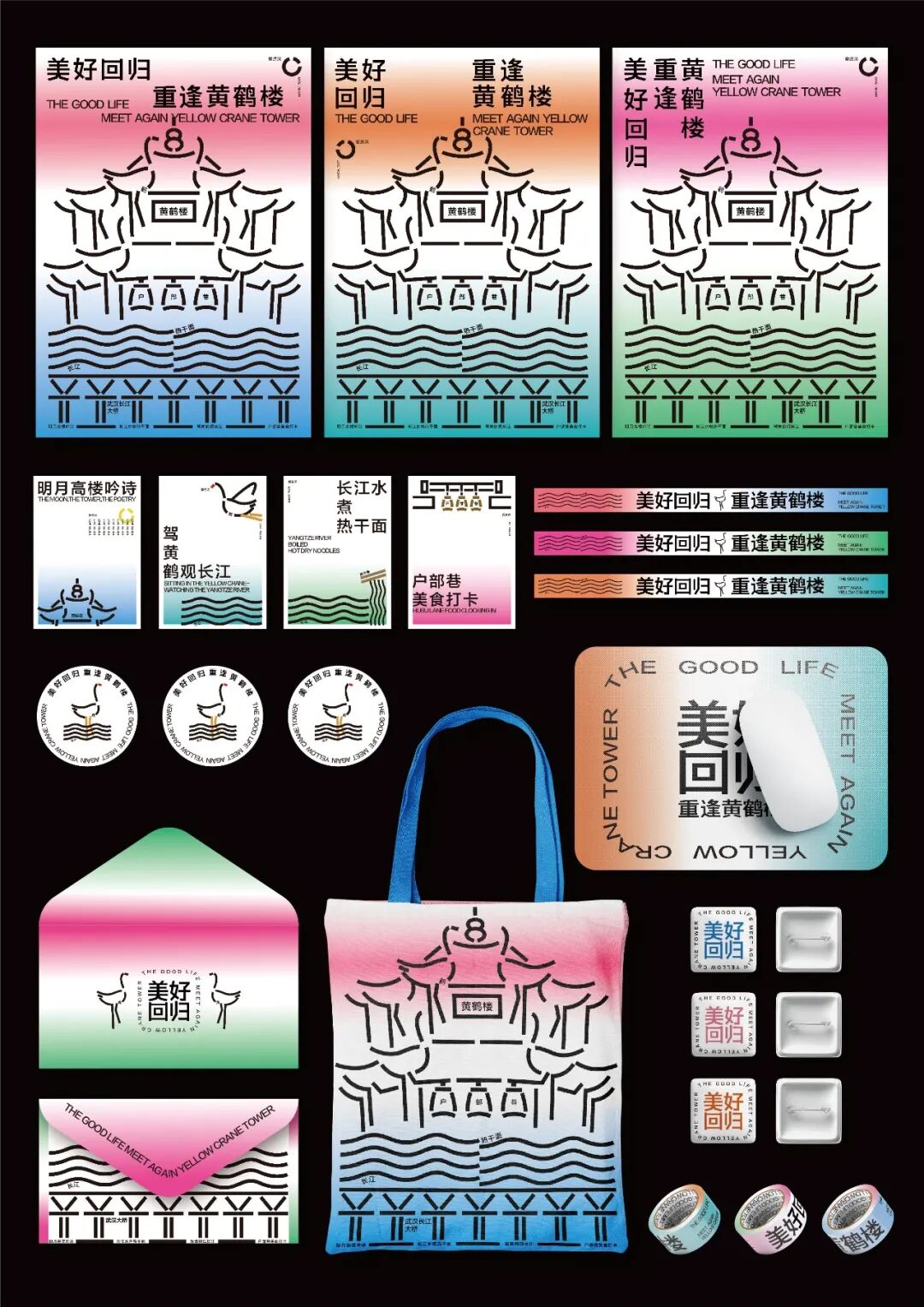 结合渐变的彩色背景的使用凸显了黄鹤楼