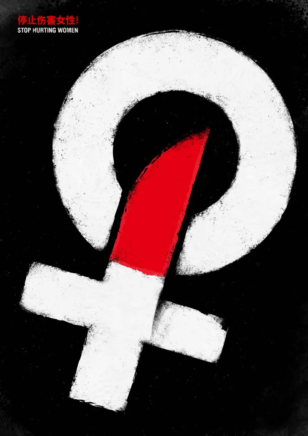 红刀刃与女性符号进行同构,呼吁社会停止对女性的伤害!