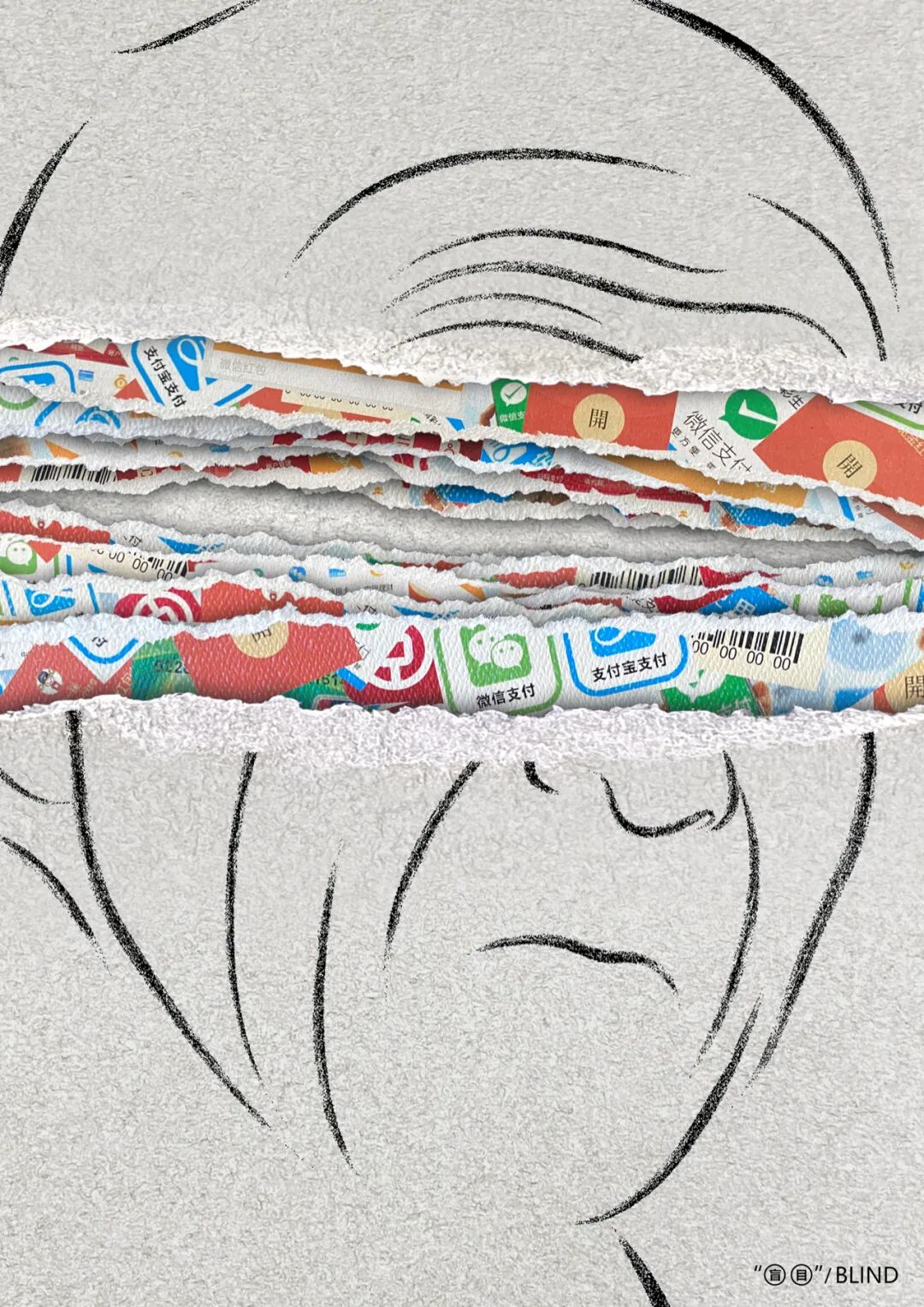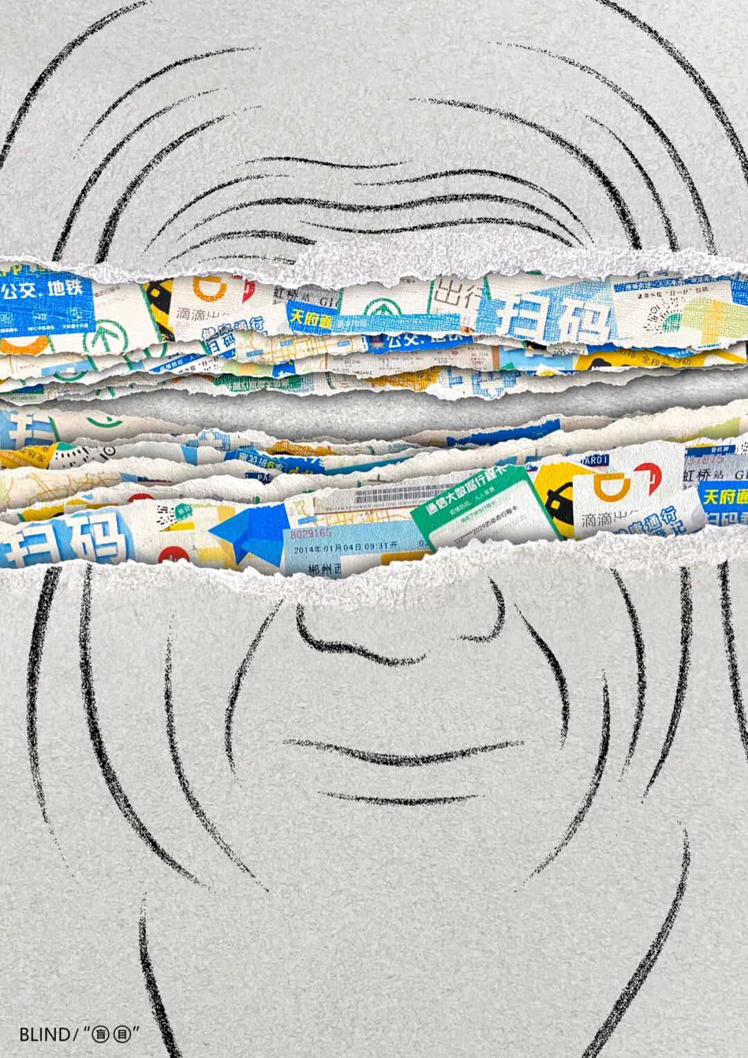 当今社会有许多生活方式正发生着改变,如出支付、出行和交流方式等。这些流行的方式给年轻人提供了便利,却还有许多老人不会使用,老人被这些新鲜而陌生的方式所“盲”目。这些撕裂而碎片化的纸张如这些方式带给老人的生活,也是撕裂而碎片化的,非常不便。呼吁大家关注老人这些问题,给予老人更多关爱。