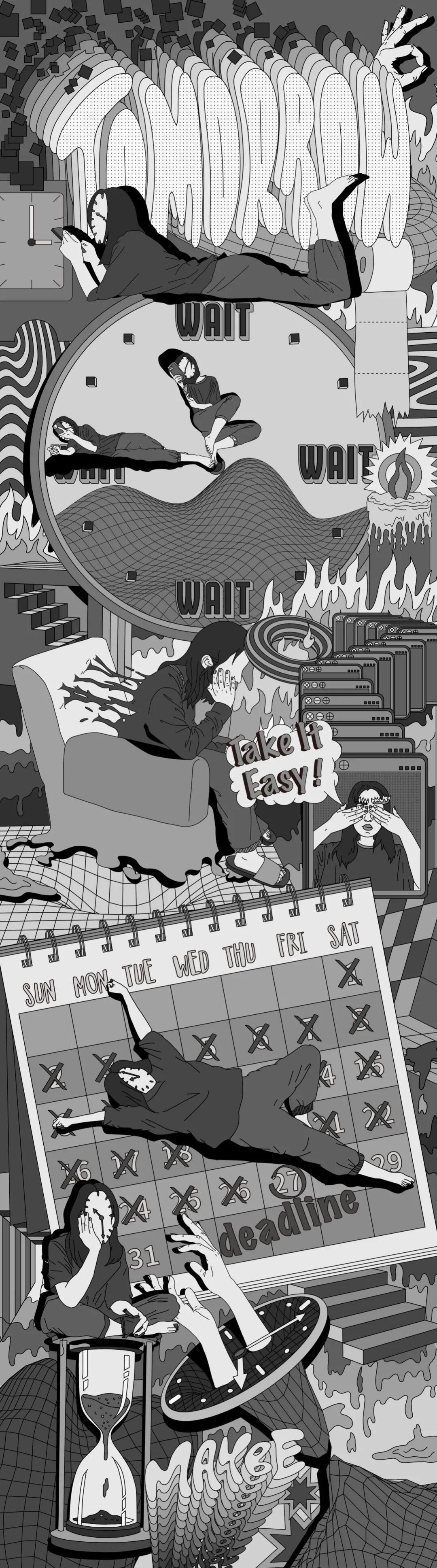 我相信每一个艺术工作者或设计师在创作过程中灵感堵塞遇见瓶颈的情况都不少见,甚至是我已经渐渐习惯了这种情况。在这种情况下我认为最不应该的就是给自己太大的创作压力,毕竟创作不是机械的工作,并不是逼自己去努力就可以大有进展的。