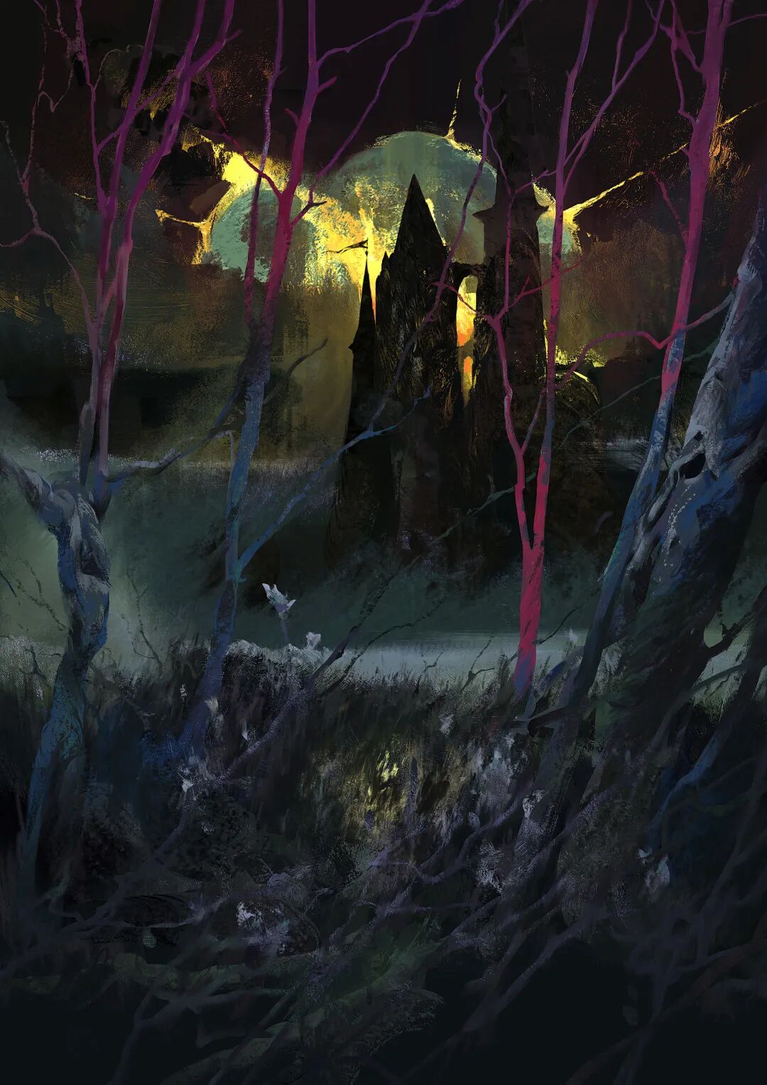 Florian Herold创作的重点就在于色彩、情绪以及风格化,他作品中妖气十足的配色令人印象十分深刻,精妙的布局和笔触渲染出了极其神秘的场景。