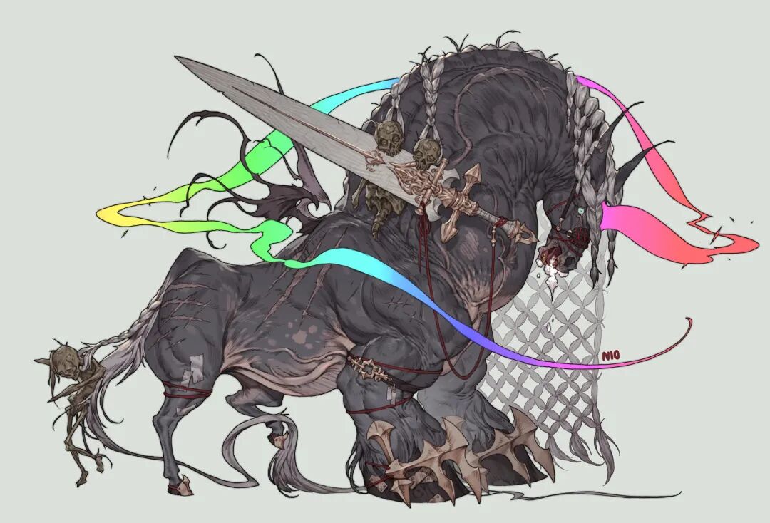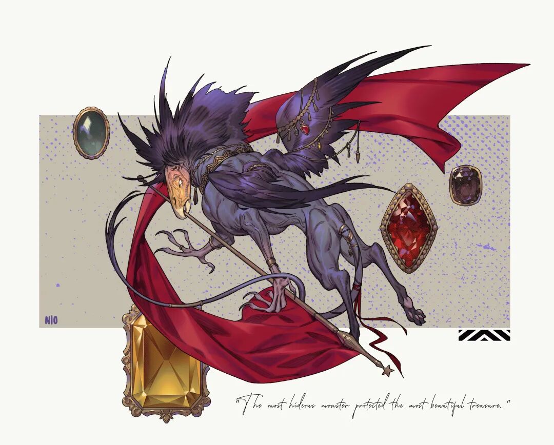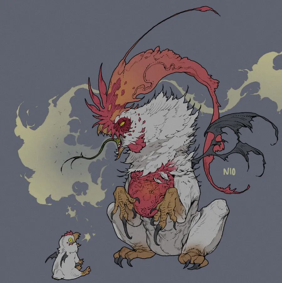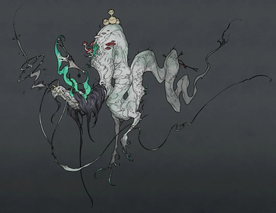 NI O的造型能力非常强,脑洞也很大,她创造的生物揉合了不少现存生物的特征,再加上她天马行空的想象力,不禁让人想起《山海经》中诸多形态各异、神秘感爆棚的神兽们。