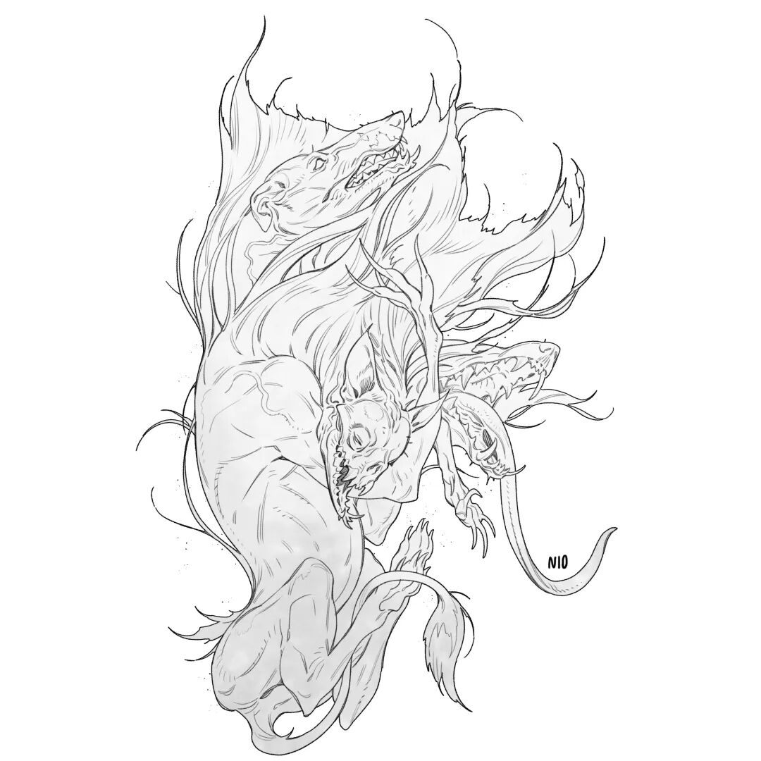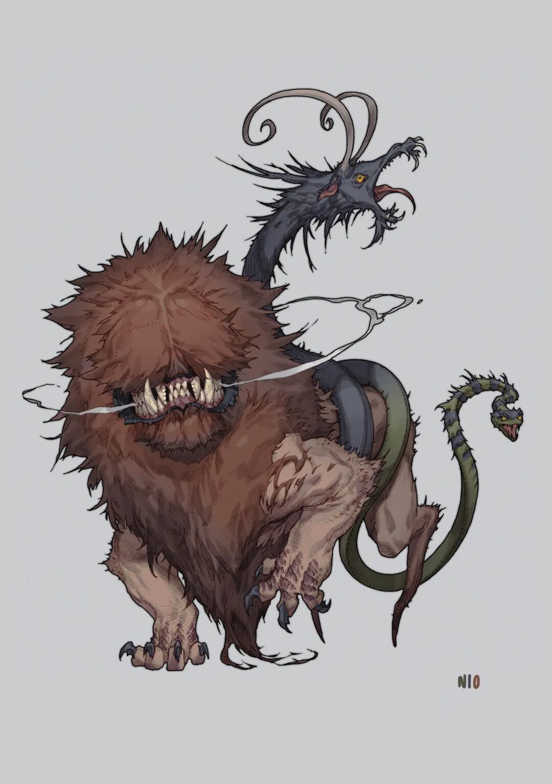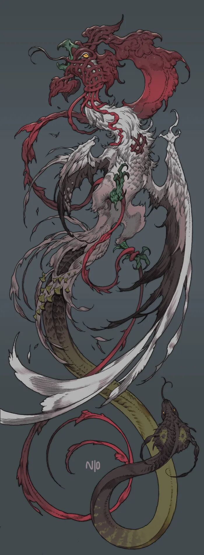 NI O的造型能力非常强,脑洞也很大,她创造的生物揉合了不少现存生物的特征,再加上她天马行空的想象力,不禁让人想起《山海经》中诸多形态各异、神秘感爆棚的神兽们。