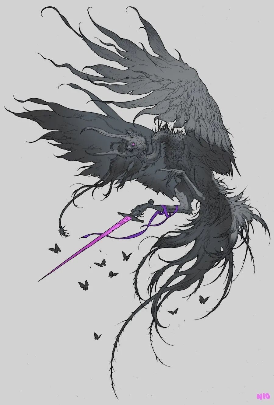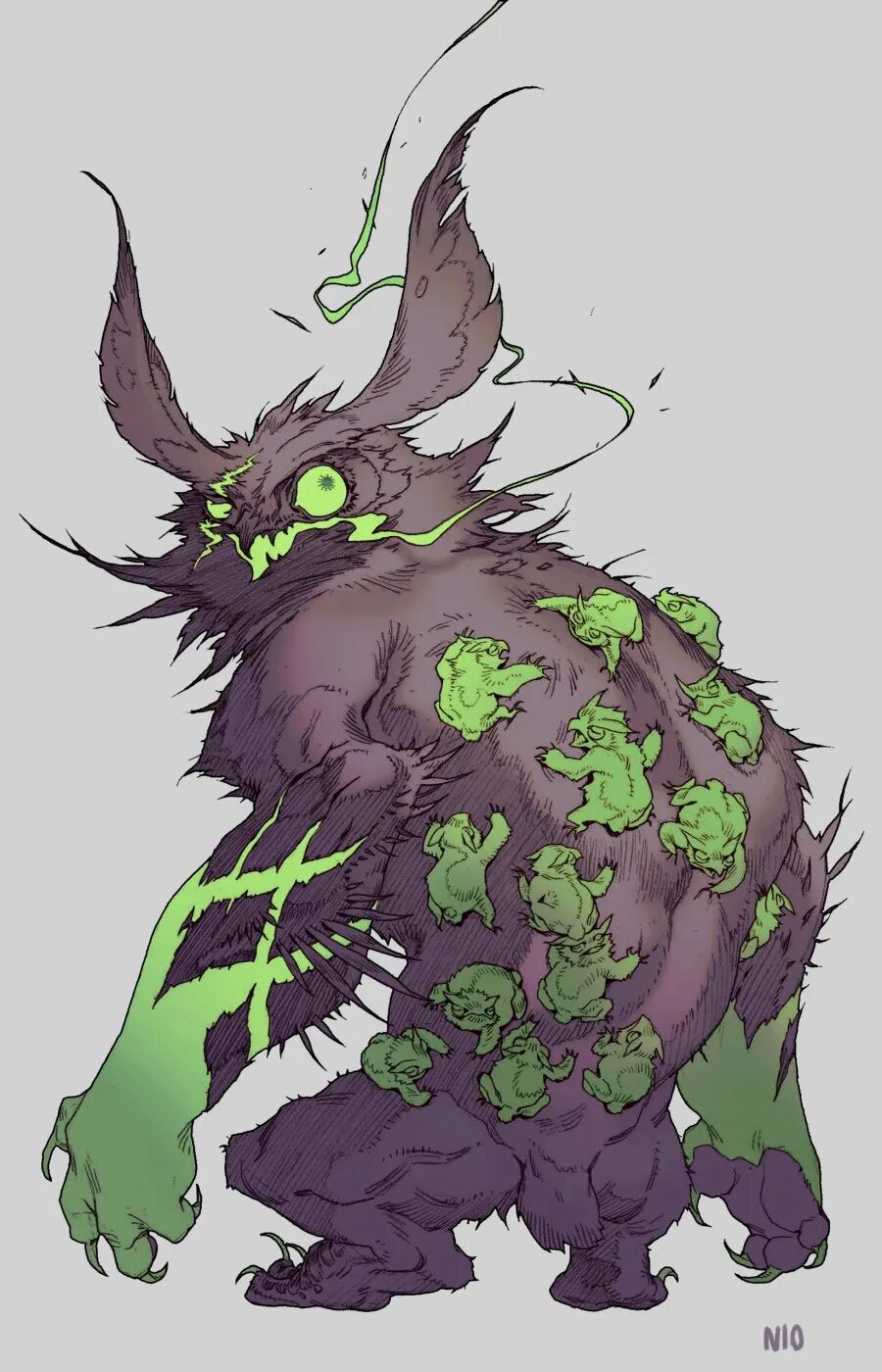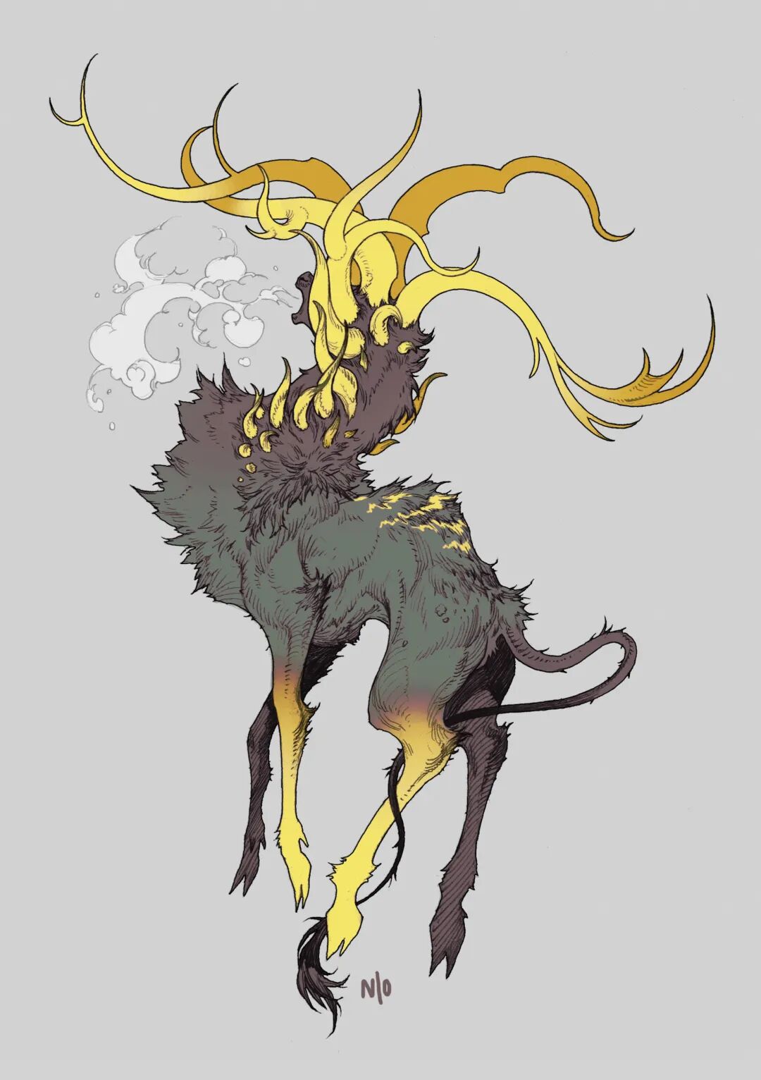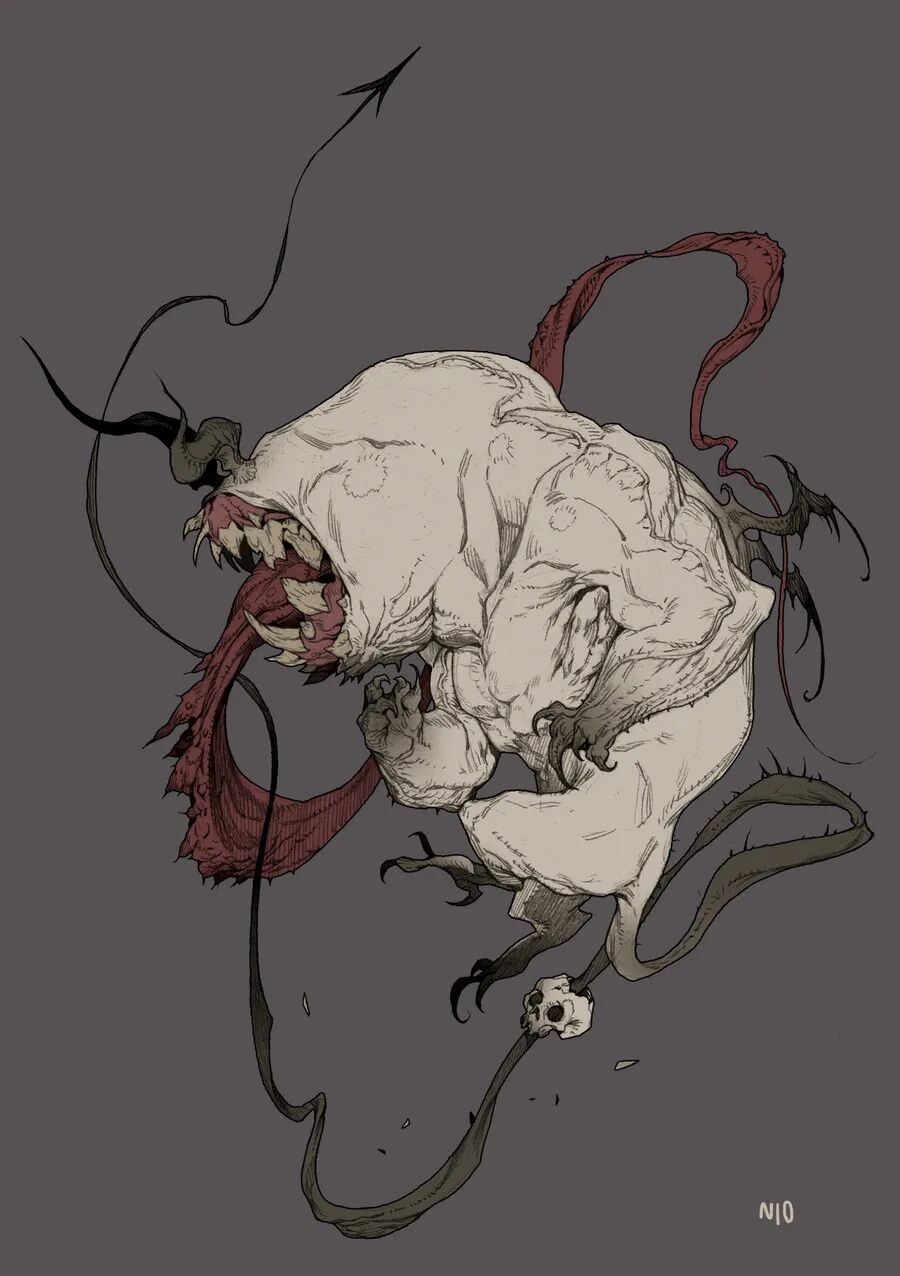 NI O的作品以风格独特的生物设计为主,线条灵动富有变化,且配色十分和谐。