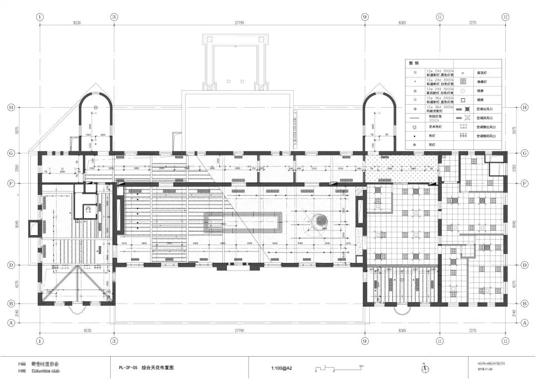 综合天花图主要是,通过天花图来反映天花上所有可见的设备末端,并表达其和天花造型、灯具布置之间关系的图纸。