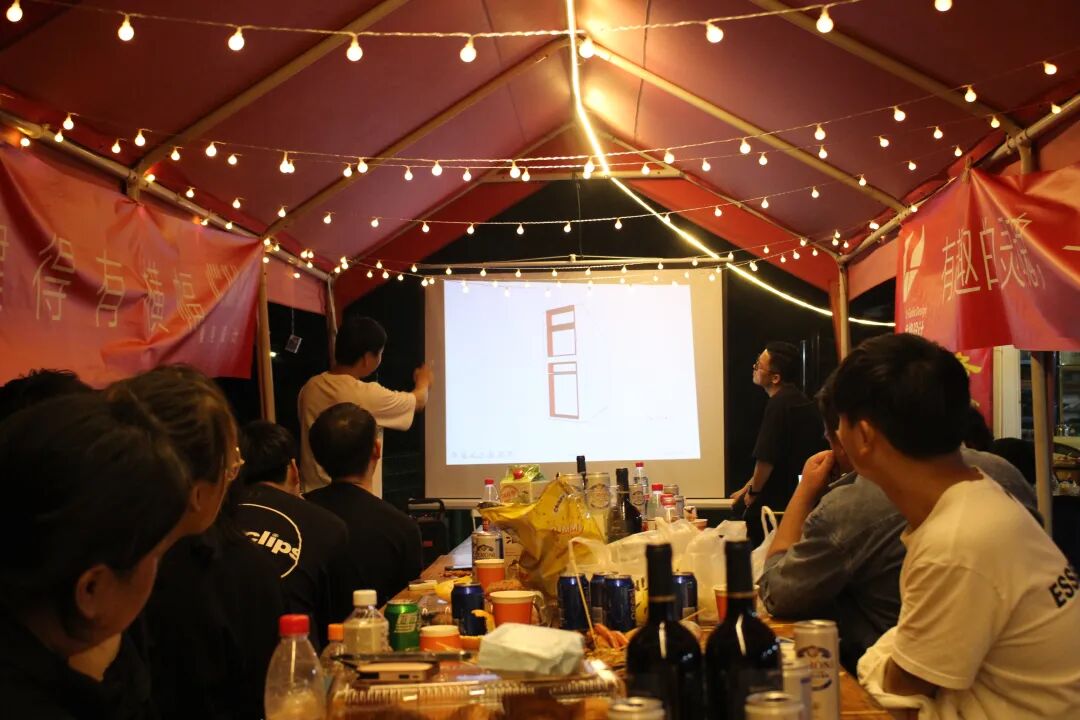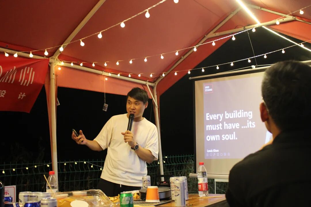 夜晚灯光熹微,尤格设计的阿木老师通过创业以来几个重要的时间节点,结合案例与自己的创业故事,分享了对于设计的理解和与创业以来的羁绊与成长,并鼓励大家要带着热爱,执着前行。