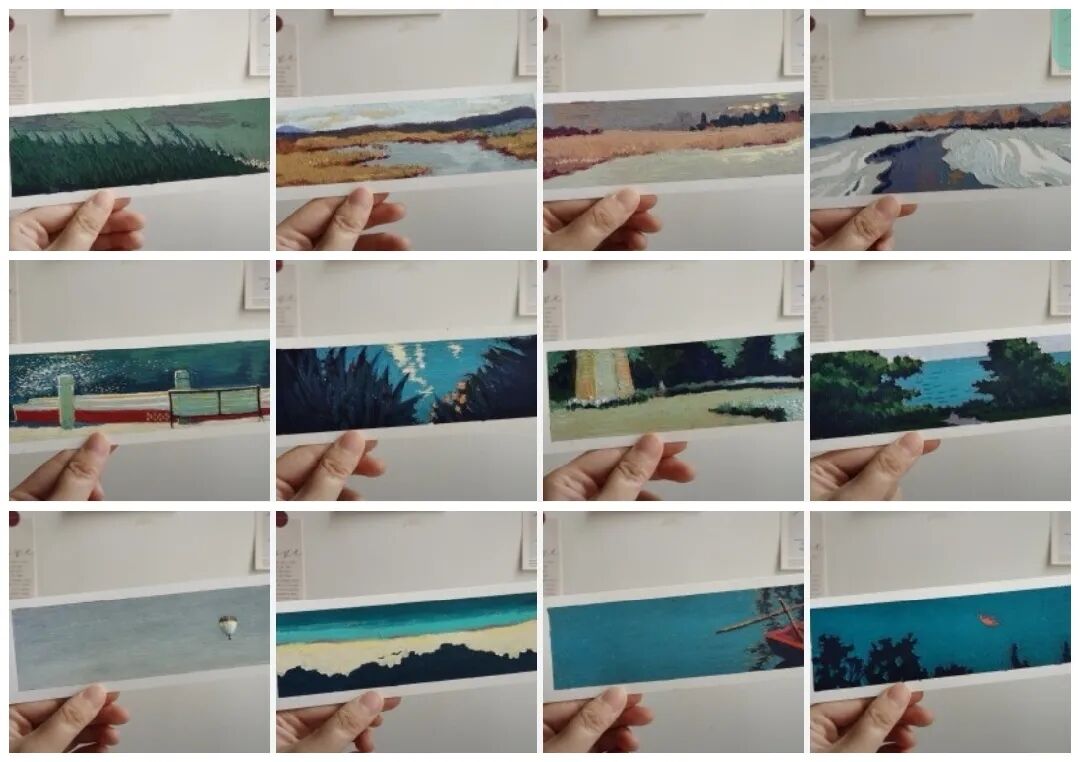 玛莎老师一直追求着平凡的治愈美,在自己的创作中也对高级灰色系有所偏爱。同时注重构图的意境表达,探索三联画、书签等的形式呈现等,画面的高级感升级,给人留下了深刻的印象。