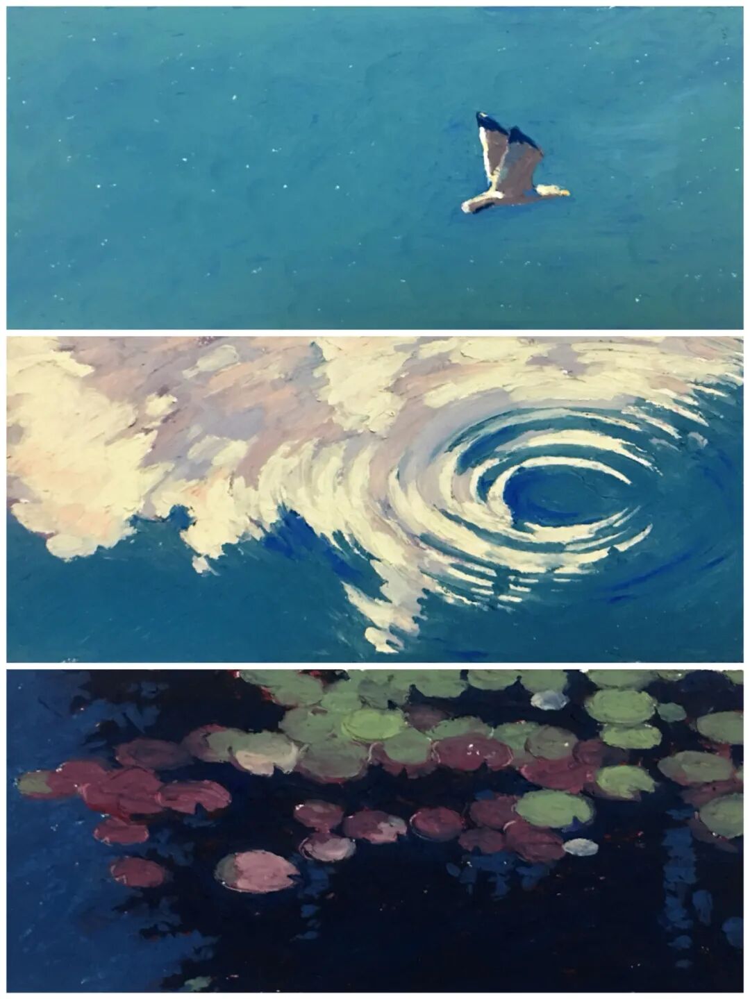 个人的创作理念是结合自身专业,从设计角度出发,将油画棒与平面设计相结合,在自由平衡色彩的同时,注重构图及画面意境的表达。