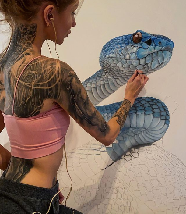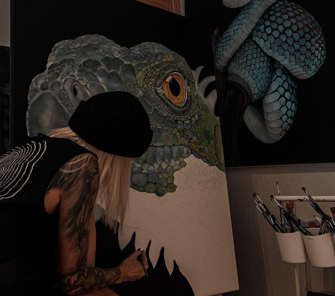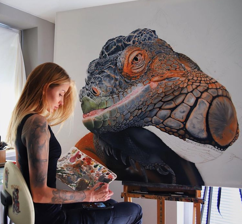 巨蜥、恐龙、毒舌和老虎,这些猛兽与美女画家的组合,给人一种非常特殊的视觉体验,接下来,就让我们一起来欣赏一下这位漂亮的美女画家和她的猛兽系列作品吧。