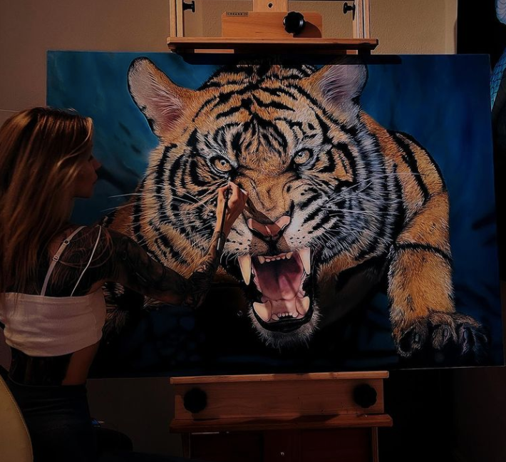 来自德国的艺术家卡特琳娜·巴斯,就是一位具有实力和相貌的女画家。她创作出许多与猛兽相关的油画作品,作品写实程度很高,单看作品称得上是一位优秀的画家,不过,许多人对卡特琳娜·巴斯作品的关注度,还没有她本人的关注度高,这是为什么呢?