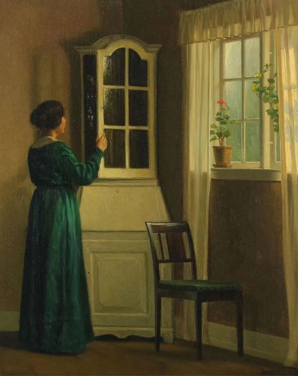 他最出名的是他秒回阳光下丹麦室内风景的作品,这些作品中,往往有一位沉着冷静的女性: