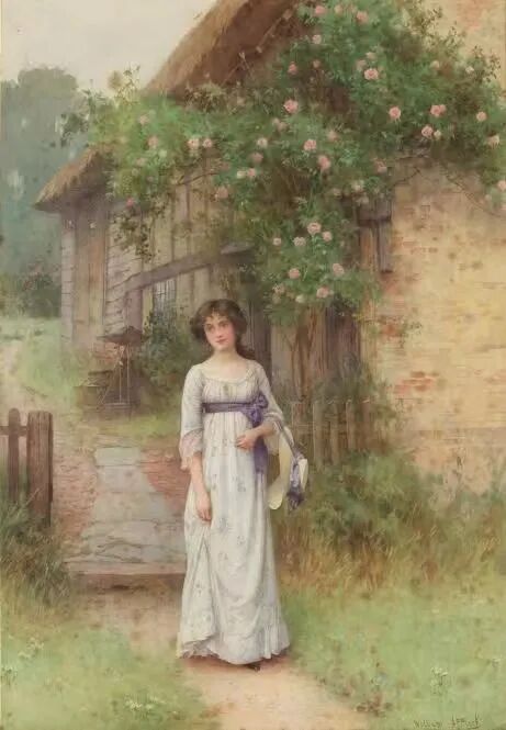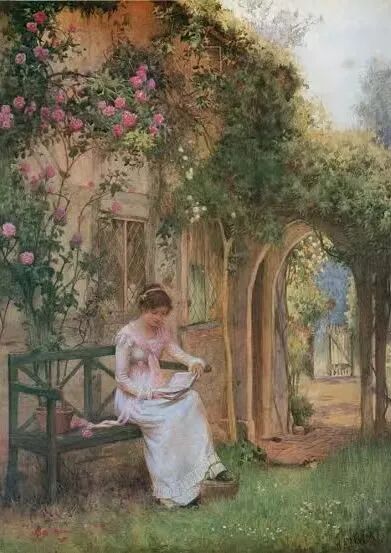 花园是一个人精神品格的外化。19 世纪末 20世纪初的英国,花园是与自然更接近的桥梁。不同种类的玫瑰竞相开放,绿色的藤蔓植物爬上砖墙,春风与虫鸣,陪伴着这位刚刚成年的少女,一起探索大自然的美好世界。