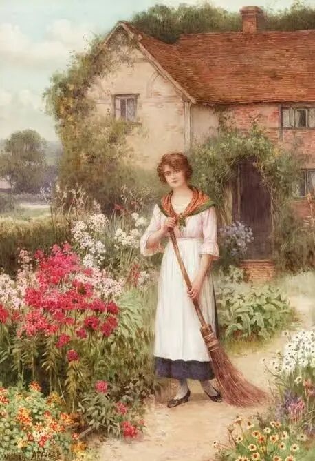 他用油画和水彩画风俗画和风景画,画作忠实地描绘了英式花园的宁静与古典。