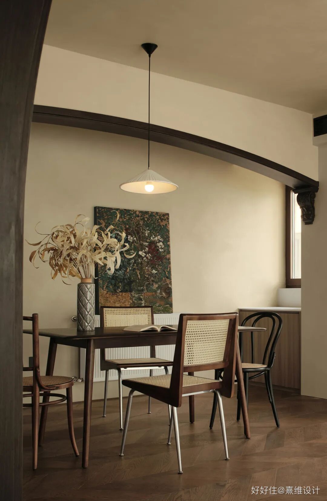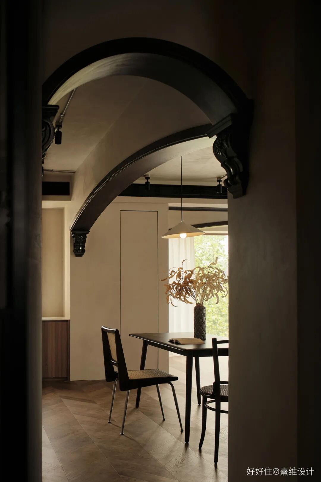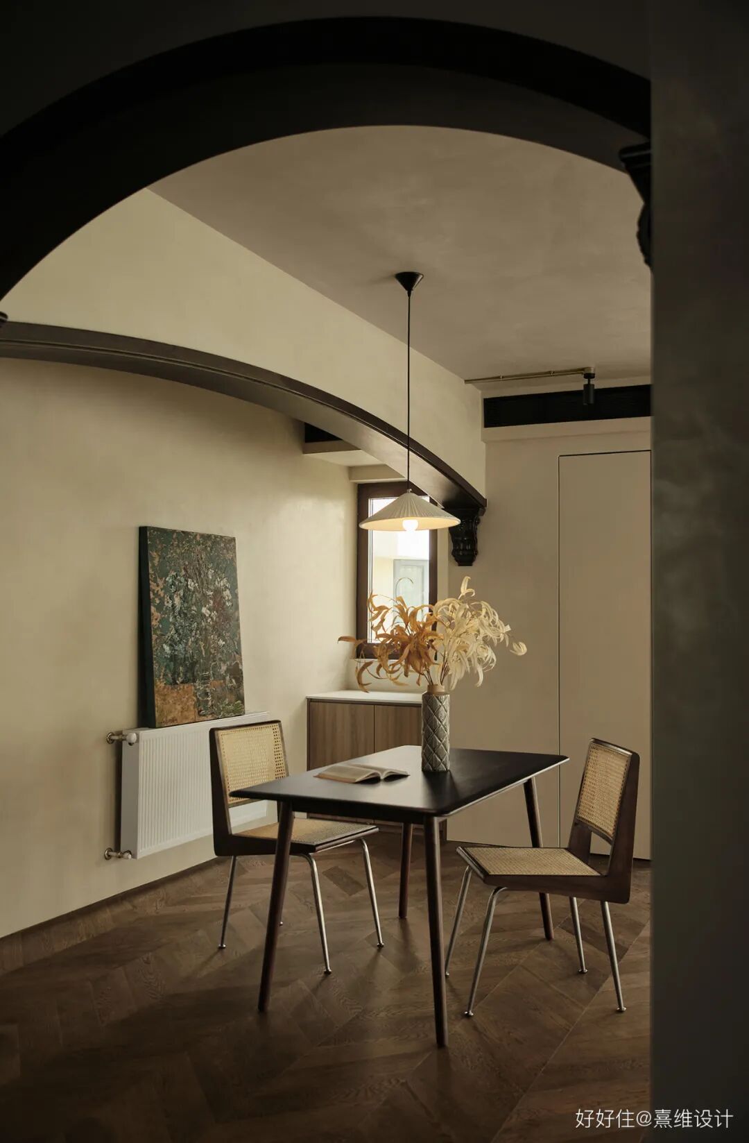 作品集2023-12-06 油画里走出来的家,巧妙平衡了现代与复古 \🏠/ 营造家今天为大家推荐的作品 来自好好住认证设计师@熹维设计 这套140㎡的房子位于江苏南京,业主喜欢多元素的混搭风格,设计师借用厨房部分空间,在入户处打造一个独立鞋帽间,另一边是满墙的白色简约收纳柜,保证了墙面的完整性,又丰富了功能,还增添了拱形复古雕花,进出门仪式感满满。 一起来看看吧! 房屋信息 户型 2 室 使用面积 140 ㎡ 装修花费 40.0 万元 房屋位置 江苏 南京 01 户型图 熹维设计:原始平面图。户型方正,公区开阔,但空间布局不是很常规,改动可操作性较高,有较高的空间利用率。 熹维设计:平面布置图。空间改造上大方向没有很大的变化,细节上的调整却不少,主要体现在如下几点: 1️⃣借用厨房1/3的空间,在入户区打造一个独立鞋帽间,另一边墙面也是满墙收纳柜,给日常生活带来实实在在的便捷; 2️⃣客餐一体全开放设计,L型大阳台全部封入室内,大大宽敞了整个空间,采光也得到优越提升; 3️⃣改变主卧进门方向,将卫生间干区延长,三分离设计舒适便捷,给业主高品质居家生活。 02 玄关 熹维设计:入户伴随着长长的走廊区域,右手边长虹玻璃门隔断独立鞋帽间,左边满墙简约收纳柜,与墙面色调统一,丰富功能的同时塑造美观大气。走廊尽头是干区洗漱台延长台面,放置装饰品作为玄关端景,搭配精致复古的拱形雕花,进出门仪式感满满。 熹维设计:深咖色拱形梁托采用实木定制而成,两边分别是精致的雕花造型,一抹复古神秘感悠扬而来,一个个这样的镶边造型奠定了整屋氛围,将虚无的复古优雅刻画写实,飘散在每个角落。 熹维设计:穿过优雅的玄关走廊,家的面貌即将揭开帷幕,这样层次化的进入,充满探索感。 03 餐厅 熹维设计:借用次卧部分空间,餐厅落地而成,靠近厨房动线舒适,采光明亮空间宽敞,简约的实木餐桌搭配我们精心挑选的椅子,更好地融入整体风格,为复古优雅感“添砖加瓦”。 熹维设计:墙顶一体采用了奶茶色灰泥,光泽肌理感散发优雅的侘寂韵味,搭配深色木材的点缀,像是油画上走出来的家。 熹维设计:为保持空间层高,我们采用了局部吊顶,因此梁体结构无处可藏,形成了别具一格的家居风貌,交叠有致的横梁围绕着柱体,点缀上深咖色实木,成为本案一大亮点。 熹维设计:次卧入口以隐形门形式藏匿于餐厅背景墙,油画与餐厅的适配度太高,消弭暖气片的异物感。微拱形镶边线条精致柔美,仿佛把餐厅框进画里,远看则是一幅优美画作。 熹维设计:“生活在油画里是种什么体验?”家要入画,人更要入画,人与家的气质一体,人也是油画里走下来的。 熹维设计:餐椅分别是不同的款式,但是大体上又有呼应之处,均是藤编与实木的组合,样式复古简洁,侘寂格调十足。 熹维设计:简单一盏吊灯作为餐区照明,斗篷式灯罩是最原始的款式,不会喧宾夺主,恰到好处的自然随性,更好彰显餐厅整体风采。 04 客厅 熹维设计:阳台封入客厅,采用落地窗连接室外,郁郁葱葱的树木成了绝佳窗景,采光与空间感都得到飞跃提升。 熹维设计:沙发不靠墙随意摆放在空间中,不设茶几,满满的随性自在,室内的绿植与室外的盎然绿意对应,谱出一派生机和谐的家居氛围。 熹维设计:铁艺构架的躺椅靠窗摆放,阳光太烈则用白纱帘遮挡,窗外的树木则是最好的隐私屏障,仿佛生活在森林里的惬意舒爽,静谧无比令人放松。 熹维设计:白色布艺沙发如躺在云朵的舒适感,落地灯完美契合硬装韵味,实木雕刻的底座呼应梁体设计,日式灯笼灯罩温馨满满,既是装饰也是夜晚的氛围来源。 熹维设计:客厅两面环窗,摒弃传统围绕电视而立的家居环境,我们面朝自然风光,多边形落地窗带来多面采光,带来生机勃勃的家居氛围,让现代复古格调更添情调,不至压抑沉闷。 熹维设计:低矮的楼层、压抑的层高、摆脱不掉的梁体...解决这一系列的弊端,我们塑造了一个质感丰富的复古侘寂之家。 05 卫生间 熹维设计:干区洗漱台外移,简单用实木隔板充当台面,台上盆坐落其上,一切随性简约,符合整屋气质。 熹维设计:三分离卫浴空间实用性满分,黑框长虹玻璃门复古时尚,不影响光影的流通,使得走廊干区也能明亮清爽。 06 卧室 熹维设计:卧室的双开拱门也是空间的一大亮点,与梁体镶边设计相得益彰,深棕色实木优雅无比,将复古调调刻画得淋漓尽致。 熹维设计:深木色鱼骨拼地板通铺进入卧室,地面连接处没有任何痕迹,双开门敞开时,尽显空间流畅宽敞感,开放式布局更加大气美观。 熹维设计:双开拱门尽显优雅大气,进出之间仪式感十足,彰显屋主的精致高品质生活。 熹维设计:卧室内部简洁无比,满墙衣柜内嵌墙面,奶白布艺床头搭配柱状边几,一切舒适随意。床品选择深蓝色系,呼应全屋质感,简约中不失高级格调。 NICELIVING DESIGNER 本文来自微信公众号“营造家”(ID:NicelivingDesigner)。大作社经授权转载,该文观点仅代表作者本人,大作社平台仅提供信息存储空间服务。 TAGS: 室内设计家居艺术空间设计 相关文章Kleoniki Andr…这是大王Day.281获奖作品《2020最佳图书…精选头像|搞怪来袭!安东尼奥·布埃诺 作品配色清新梦幻的场景插画,充…美国Jennifer Mc…【小鹏设计】设计小改/动力…【首发】地点空间丨打破空间…谢商家不坑之恩!只骗有钱人…