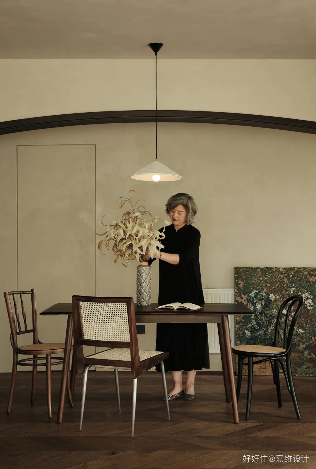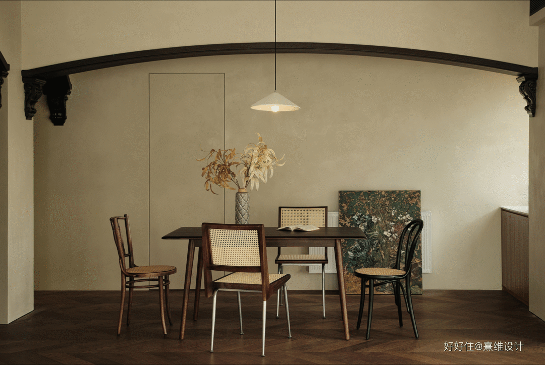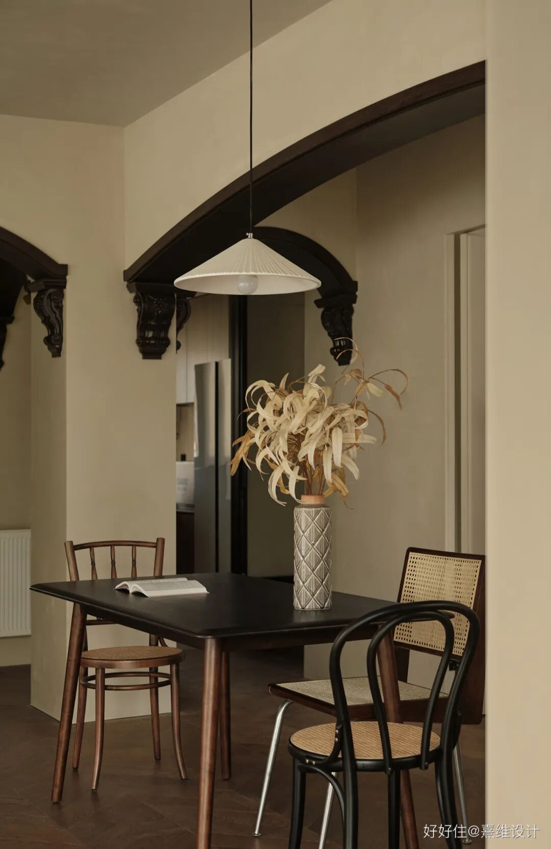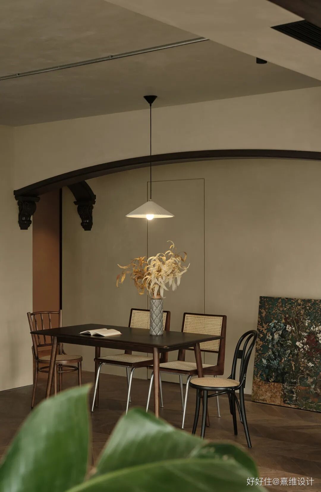 作品集2023-12-06 油画里走出来的家,巧妙平衡了现代与复古 \🏠/ 营造家今天为大家推荐的作品 来自好好住认证设计师@熹维设计 这套140㎡的房子位于江苏南京,业主喜欢多元素的混搭风格,设计师借用厨房部分空间,在入户处打造一个独立鞋帽间,另一边是满墙的白色简约收纳柜,保证了墙面的完整性,又丰富了功能,还增添了拱形复古雕花,进出门仪式感满满。 一起来看看吧! 房屋信息 户型 2 室 使用面积 140 ㎡ 装修花费 40.0 万元 房屋位置 江苏 南京 01 户型图 熹维设计:原始平面图。户型方正,公区开阔,但空间布局不是很常规,改动可操作性较高,有较高的空间利用率。 熹维设计:平面布置图。空间改造上大方向没有很大的变化,细节上的调整却不少,主要体现在如下几点: 1️⃣借用厨房1/3的空间,在入户区打造一个独立鞋帽间,另一边墙面也是满墙收纳柜,给日常生活带来实实在在的便捷; 2️⃣客餐一体全开放设计,L型大阳台全部封入室内,大大宽敞了整个空间,采光也得到优越提升; 3️⃣改变主卧进门方向,将卫生间干区延长,三分离设计舒适便捷,给业主高品质居家生活。 02 玄关 熹维设计:入户伴随着长长的走廊区域,右手边长虹玻璃门隔断独立鞋帽间,左边满墙简约收纳柜,与墙面色调统一,丰富功能的同时塑造美观大气。走廊尽头是干区洗漱台延长台面,放置装饰品作为玄关端景,搭配精致复古的拱形雕花,进出门仪式感满满。 熹维设计:深咖色拱形梁托采用实木定制而成,两边分别是精致的雕花造型,一抹复古神秘感悠扬而来,一个个这样的镶边造型奠定了整屋氛围,将虚无的复古优雅刻画写实,飘散在每个角落。 熹维设计:穿过优雅的玄关走廊,家的面貌即将揭开帷幕,这样层次化的进入,充满探索感。 03 餐厅 熹维设计:借用次卧部分空间,餐厅落地而成,靠近厨房动线舒适,采光明亮空间宽敞,简约的实木餐桌搭配我们精心挑选的椅子,更好地融入整体风格,为复古优雅感“添砖加瓦”。 熹维设计:墙顶一体采用了奶茶色灰泥,光泽肌理感散发优雅的侘寂韵味,搭配深色木材的点缀,像是油画上走出来的家。 熹维设计:为保持空间层高,我们采用了局部吊顶,因此梁体结构无处可藏,形成了别具一格的家居风貌,交叠有致的横梁围绕着柱体,点缀上深咖色实木,成为本案一大亮点。 熹维设计:次卧入口以隐形门形式藏匿于餐厅背景墙,油画与餐厅的适配度太高,消弭暖气片的异物感。微拱形镶边线条精致柔美,仿佛把餐厅框进画里,远看则是一幅优美画作。 熹维设计:“生活在油画里是种什么体验?”家要入画,人更要入画,人与家的气质一体,人也是油画里走下来的。 熹维设计:餐椅分别是不同的款式,但是大体上又有呼应之处,均是藤编与实木的组合,样式复古简洁,侘寂格调十足。 熹维设计:简单一盏吊灯作为餐区照明,斗篷式灯罩是最原始的款式,不会喧宾夺主,恰到好处的自然随性,更好彰显餐厅整体风采。 04 客厅 熹维设计:阳台封入客厅,采用落地窗连接室外,郁郁葱葱的树木成了绝佳窗景,采光与空间感都得到飞跃提升。 熹维设计:沙发不靠墙随意摆放在空间中,不设茶几,满满的随性自在,室内的绿植与室外的盎然绿意对应,谱出一派生机和谐的家居氛围。 熹维设计:铁艺构架的躺椅靠窗摆放,阳光太烈则用白纱帘遮挡,窗外的树木则是最好的隐私屏障,仿佛生活在森林里的惬意舒爽,静谧无比令人放松。 熹维设计:白色布艺沙发如躺在云朵的舒适感,落地灯完美契合硬装韵味,实木雕刻的底座呼应梁体设计,日式灯笼灯罩温馨满满,既是装饰也是夜晚的氛围来源。 熹维设计:客厅两面环窗,摒弃传统围绕电视而立的家居环境,我们面朝自然风光,多边形落地窗带来多面采光,带来生机勃勃的家居氛围,让现代复古格调更添情调,不至压抑沉闷。 熹维设计:低矮的楼层、压抑的层高、摆脱不掉的梁体...解决这一系列的弊端,我们塑造了一个质感丰富的复古侘寂之家。 05 卫生间 熹维设计:干区洗漱台外移,简单用实木隔板充当台面,台上盆坐落其上,一切随性简约,符合整屋气质。 熹维设计:三分离卫浴空间实用性满分,黑框长虹玻璃门复古时尚,不影响光影的流通,使得走廊干区也能明亮清爽。 06 卧室 熹维设计:卧室的双开拱门也是空间的一大亮点,与梁体镶边设计相得益彰,深棕色实木优雅无比,将复古调调刻画得淋漓尽致。 熹维设计:深木色鱼骨拼地板通铺进入卧室,地面连接处没有任何痕迹,双开门敞开时,尽显空间流畅宽敞感,开放式布局更加大气美观。 熹维设计:双开拱门尽显优雅大气,进出之间仪式感十足,彰显屋主的精致高品质生活。 熹维设计:卧室内部简洁无比,满墙衣柜内嵌墙面,奶白布艺床头搭配柱状边几,一切舒适随意。床品选择深蓝色系,呼应全屋质感,简约中不失高级格调。 NICELIVING DESIGNER 本文来自微信公众号“营造家”(ID:NicelivingDesigner)。大作社经授权转载,该文观点仅代表作者本人,大作社平台仅提供信息存储空间服务。 TAGS: 室内设计家居艺术空间设计 相关文章Kleoniki Andr…这是大王Day.281获奖作品《2020最佳图书…精选头像|搞怪来袭!安东尼奥·布埃诺 作品配色清新梦幻的场景插画,充…美国Jennifer Mc…【小鹏设计】设计小改/动力…【首发】地点空间丨打破空间…谢商家不坑之恩!只骗有钱人…