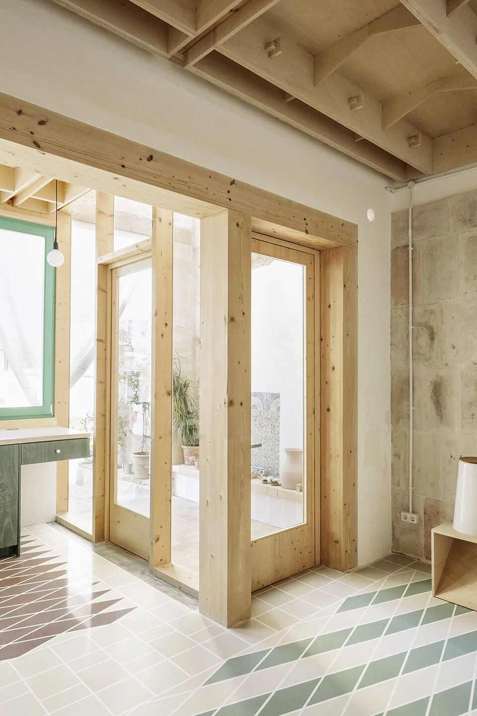 建筑内部有着不同的“气候区”:有的房间有漫反射光,有的有晨光;有的房间朝向东北,有的朝向西南;一些房间可以看到室内天井,另一些房间可以享受午后阳光和附近城堡的景色;