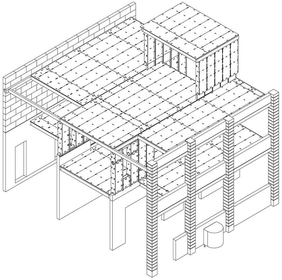 为了保护独立的、脱离周围环境的基层结构,项目团队打造了一套场外预制胶合板系统。