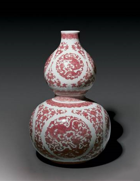 ▲清乾隆 釉里红团龙纹葫芦瓶