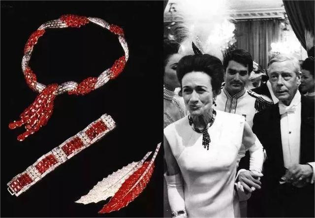这条项链虽然没有使用大颗红宝石作为主石,但是一簇一簇的红宝石和钻石形成了柔美的缎带造型十分精致优雅。同时这条项链也见证了英国温莎公爵,也是曾经的爱德华八世国王爱美人爱江山的惊世爱情。1936年,温莎公爵为了迎娶曾经两度离异的美国妇人沃利斯·辛普森,而选择宣布退位,而这建红宝石项链就是他送给沃利斯的礼物,并取名为“我的沃利斯”。这条项链还配有一条手链和一个胸针,是由梵克雅宝设计而成的,同时展现了具有梵克雅宝代表性的隐秘镶嵌工艺,视觉上看起来十分细腻美艳。