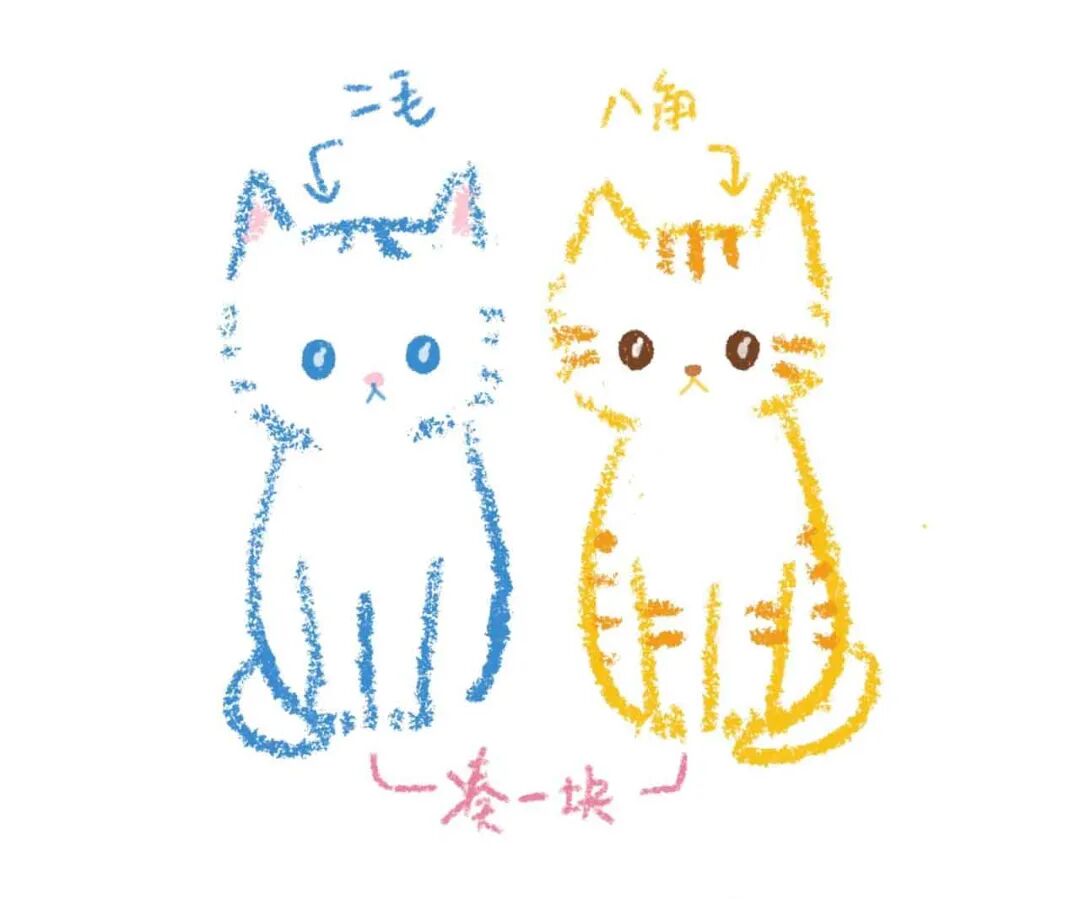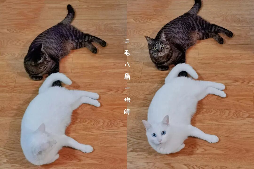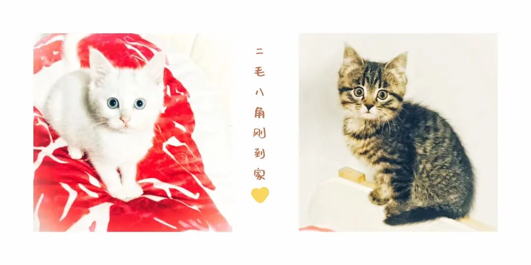 我家两只猫咪分别叫二毛和八角,因为二毛八角凑一块。她们是一窝的亲姐妹。是我当老师的朋友的学生在野外捡到的。当时还刚刚出生,但是没有大猫照顾。我的朋友帮我照顾到一个月,然后正式到了我家,成为二毛和八角。