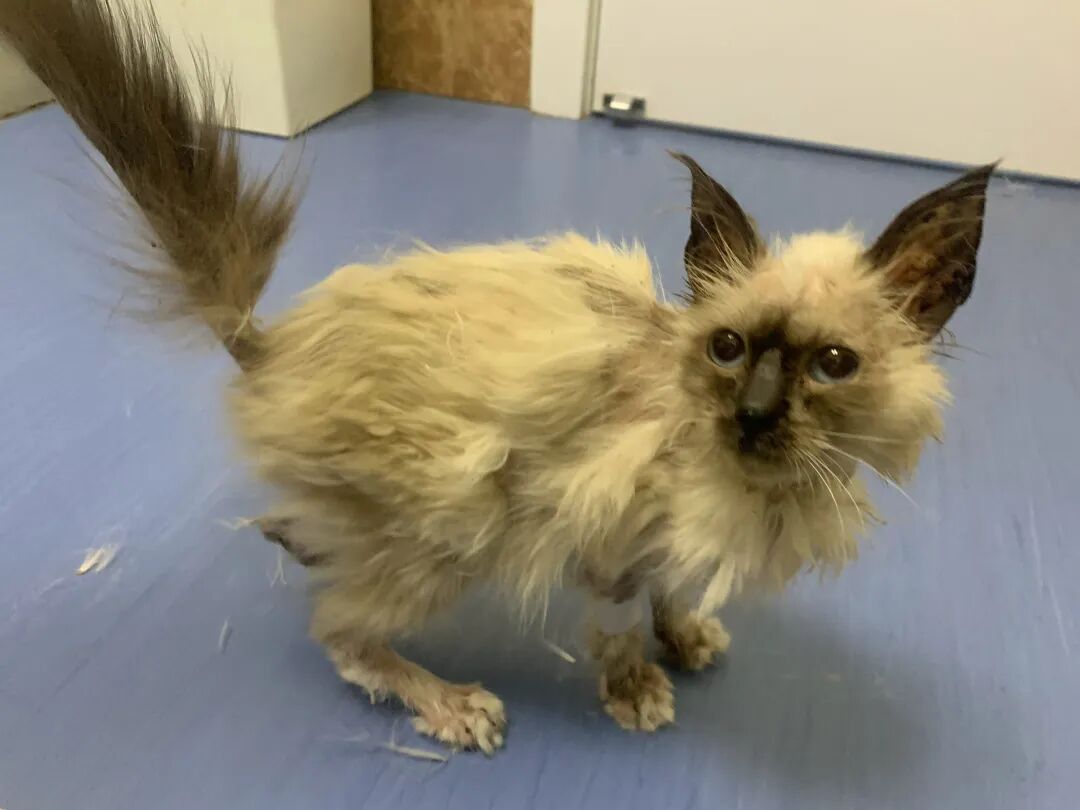 2019的一个秋天,我在朋友圈看到了她,是做宠物用品的朋友发布的找领养的视频,觉得这个小猫很可爱,但是家里已经有一只患病的老猫就放弃了领养的念头。但是一个月后朋友再次发布了这个领养视频。一个月过去了还没被领养走,那我可就忍不住了,托朋友去北京周边的别墅接走了她。