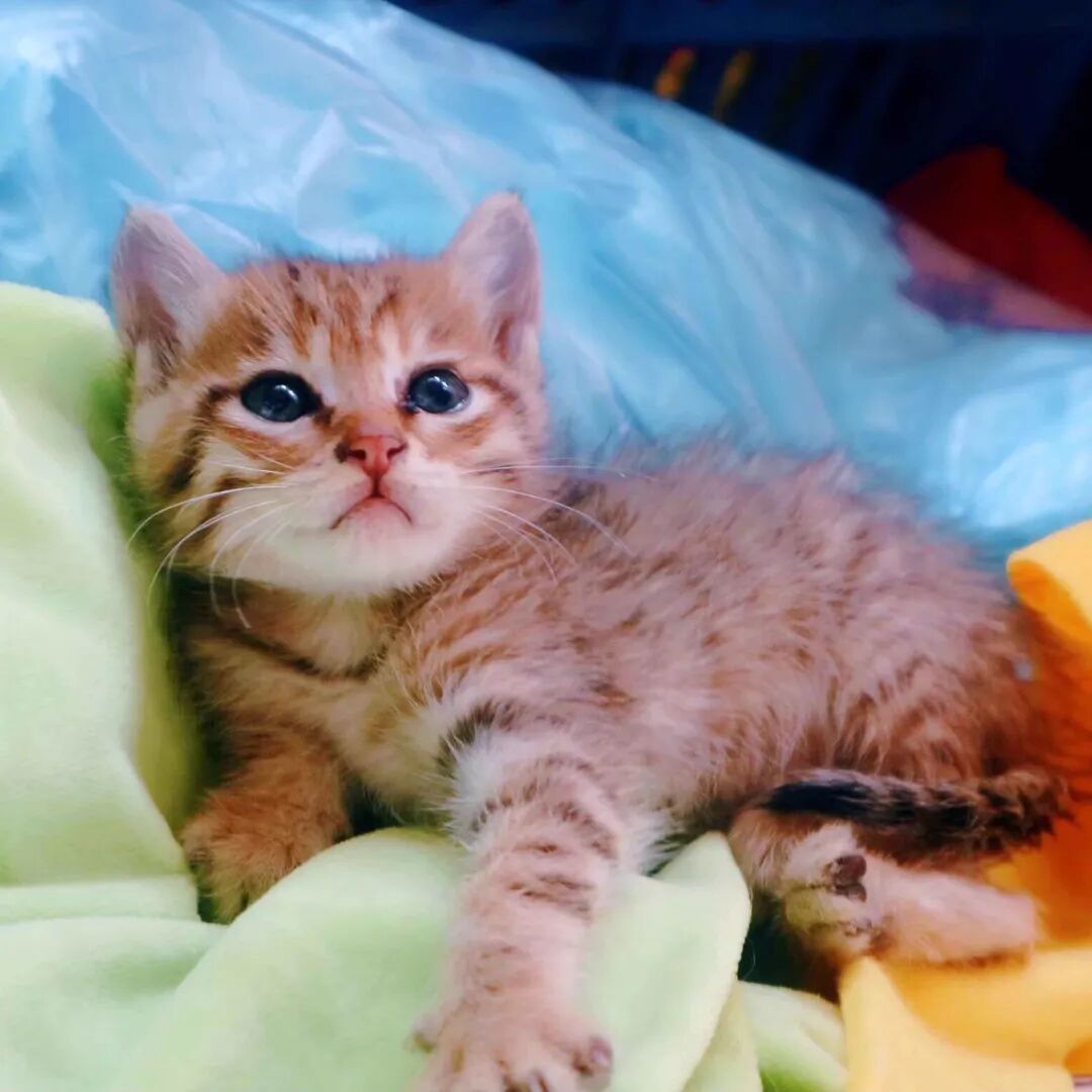 在猫群偶然看到一个小哥哥捡到一只可怜小猫,医生说瘦到不敢碰,浑身长满猫癣并且真菌感染,极度营养不良,治疗费用很高,我们就帮他一起募捐。后来我去看了小猫几次,越来越觉得它小眼睛一直盯着我,想让我带它回家。