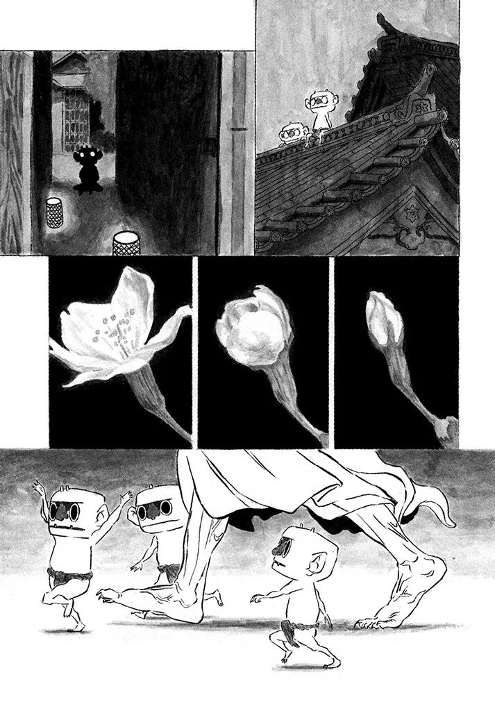 左吉拾起地板上的种子时,抬眼看见了门便望着他的奇怪生物,是妖魔吗?