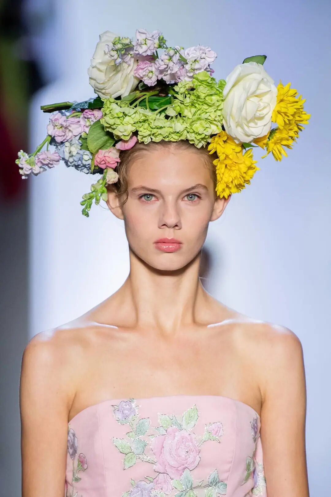 缤纷浪漫的花卉成为了贯穿全场的主要设计元素,除了面料印花、还可以从头饰、腰间、包袋中找到它的踪迹,犹如一首复古典雅的悠扬田园诗。此外,Prabal Gurung还将传统扎染技法改良应用于这一季的织物上,打造出朦胧迷幻而充满生机的印花图案