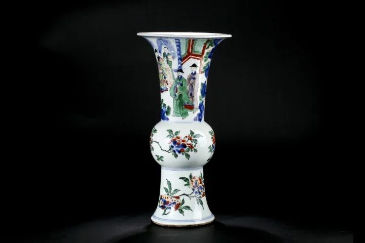 右一 万历款五彩云龙花鸟图花觚 明万历