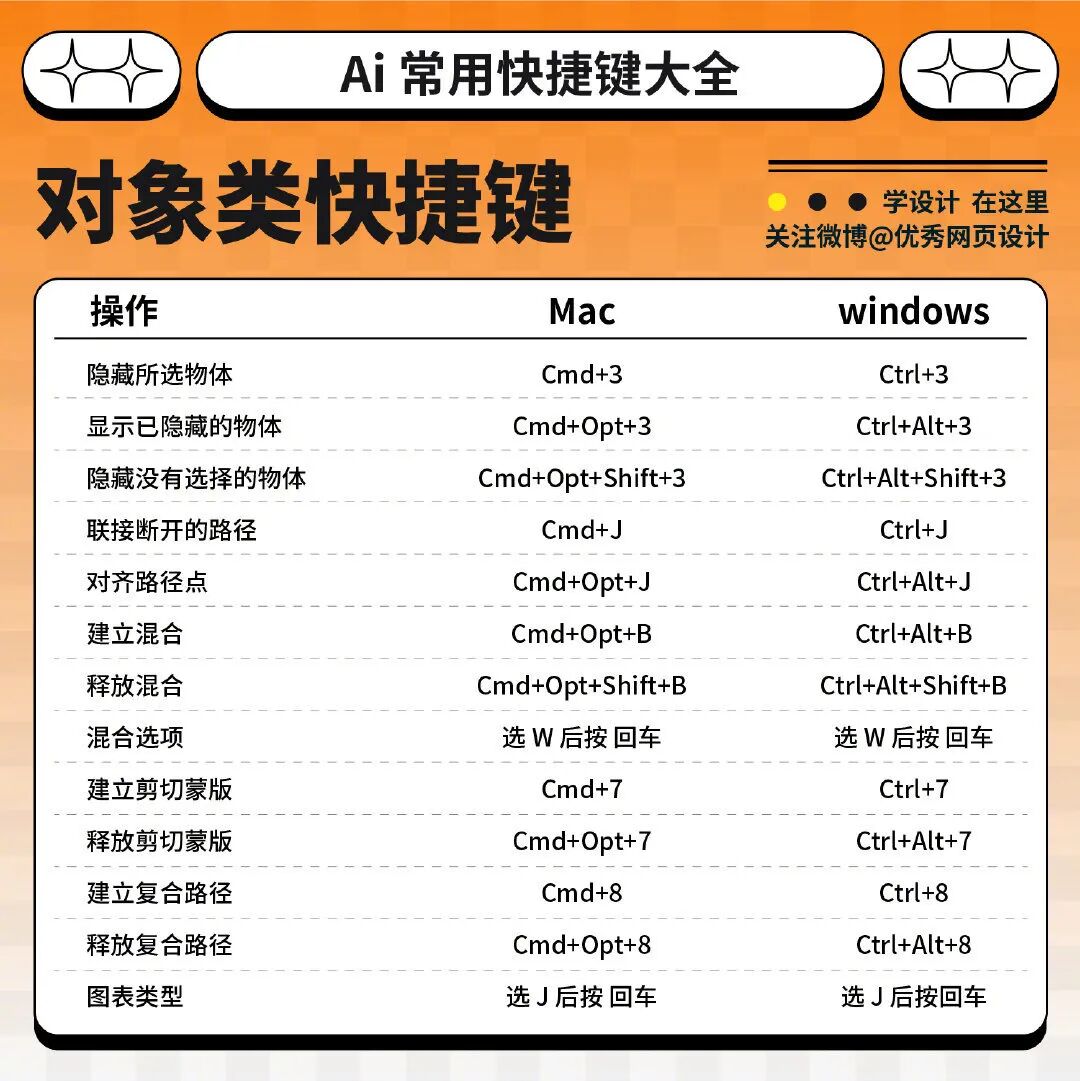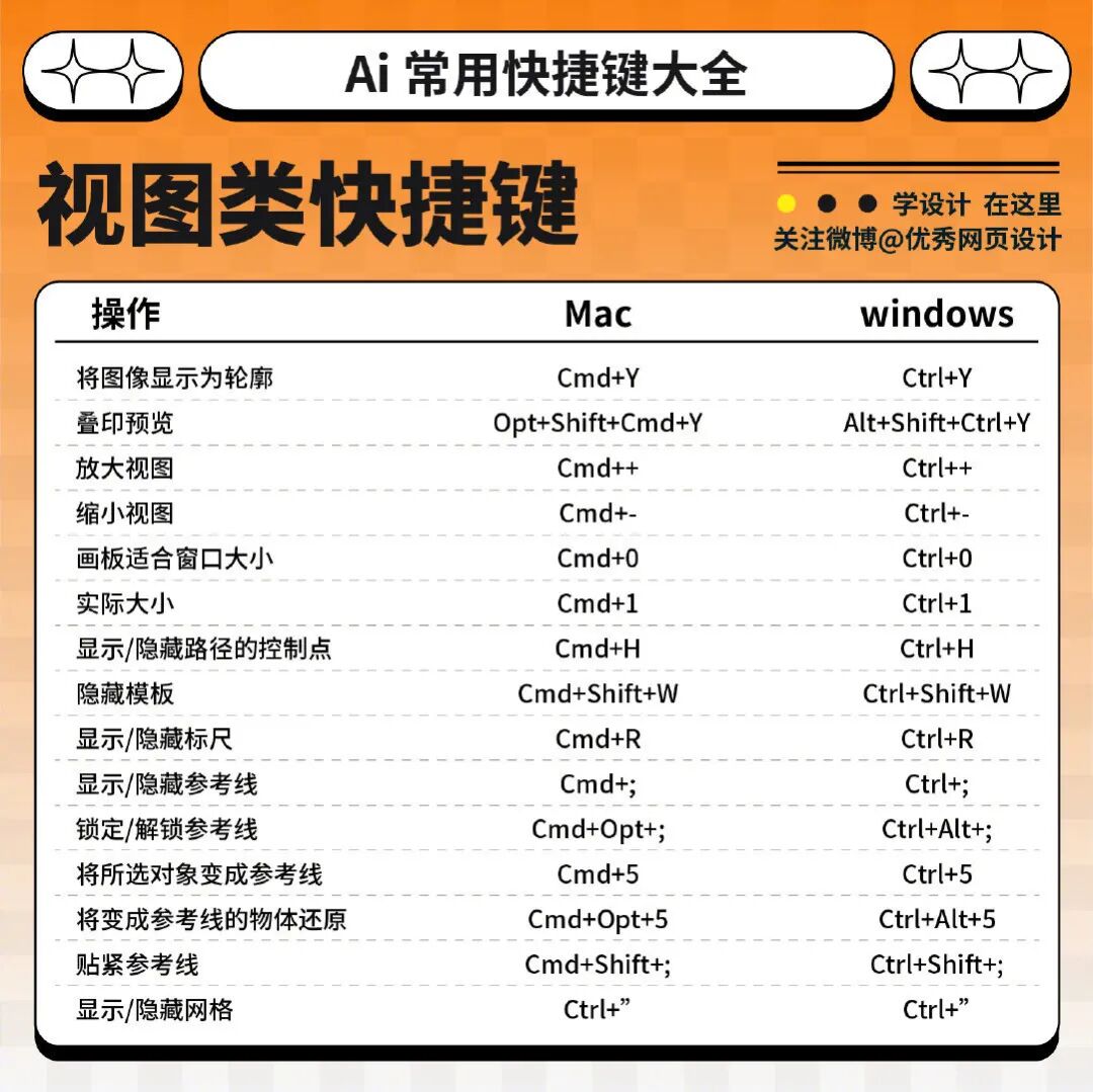 今天我就整理了一波 Mac 和 Win 系统的 AI 快捷键对照表,可以 🐎 ~