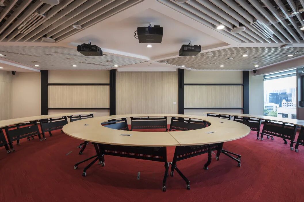为彰显新加坡管理大学在创新和实验方向的决心,其新建的X学院大楼成为了新加坡首座达到净零能耗的木结构建筑。项目中心有一个交通主干隧道的出口,位于两栋连通教学楼的正中间,轻材质的木结构为建筑隔音带来挑战,被动式冷却系统又将背景噪声降到了远低于传统建筑的水平,更易在室内不同空间造成串声现象。此外,开放实验空间的多功能及可变声学设计,自习间及晚间休息仓的隔音等问题也成为设计难点。