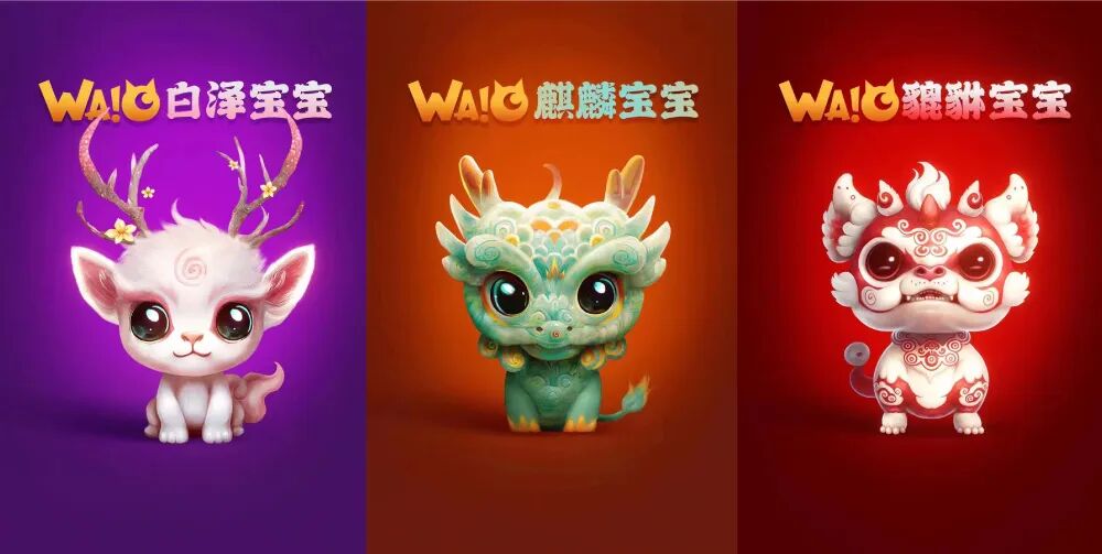 在参与此次设计春晚神兽 IP 形象之前,WAIO 工作室团队已与央视网、知造局、阿里拍卖、小红书、雪佛兰等品牌有过合作,团队成员担任过全球首届 AI 艺术创作大奖赛的特邀评委,多项 AI 艺术作品也在北京、上海、深圳、成都等地巡回展出。