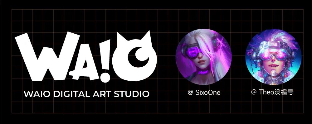 在参与此次设计春晚神兽IP形象之前,Sixone就已经和其他成员一起创立一家数字艺术工作室WAIO,是国内最早成立的AI数字工作室之一。工作室目前由 5 位前沿 AI 人工智能绘画艺术家组成,他们本职为中国传统艺术画师、CG 艺术家、雕塑家、设计师、原画师,同时悉知并掌握最新的 AI 绘画工具用法, 合并形成了完整高效的工作流。
