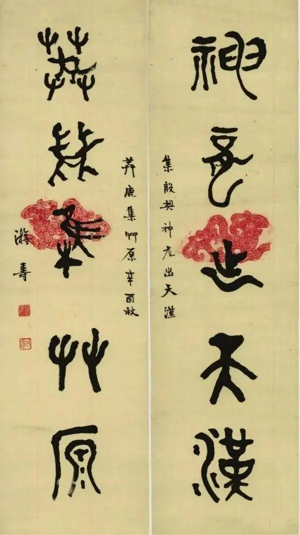 游寿于甲骨、金文十分用功且运用精熟,并深得汉隶、魏碑的神髓,其回腕执笔取法何绍基,其书作刚柔相济,拙朴苍健,生涩醇厚,具秦汉风骨。且诸体皆精。