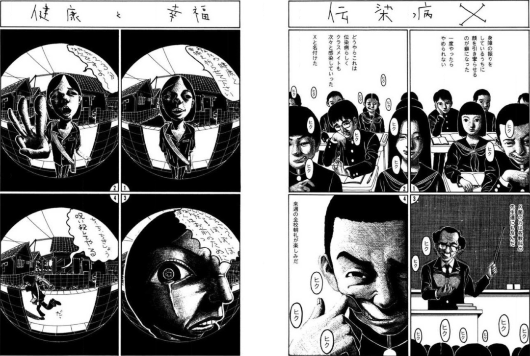 古屋兔丸从出道伊始就表现出了对于恐怖、怪异题材的极大热衷,其中戏仿、恶搞的行径层出不穷,互相杂糅。