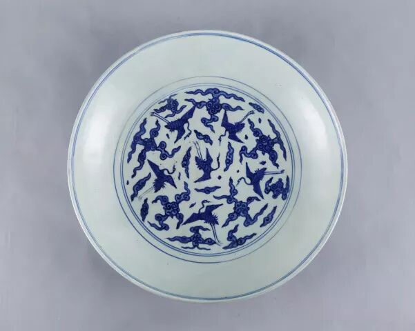 明嘉靖青花云鹤纹大盘