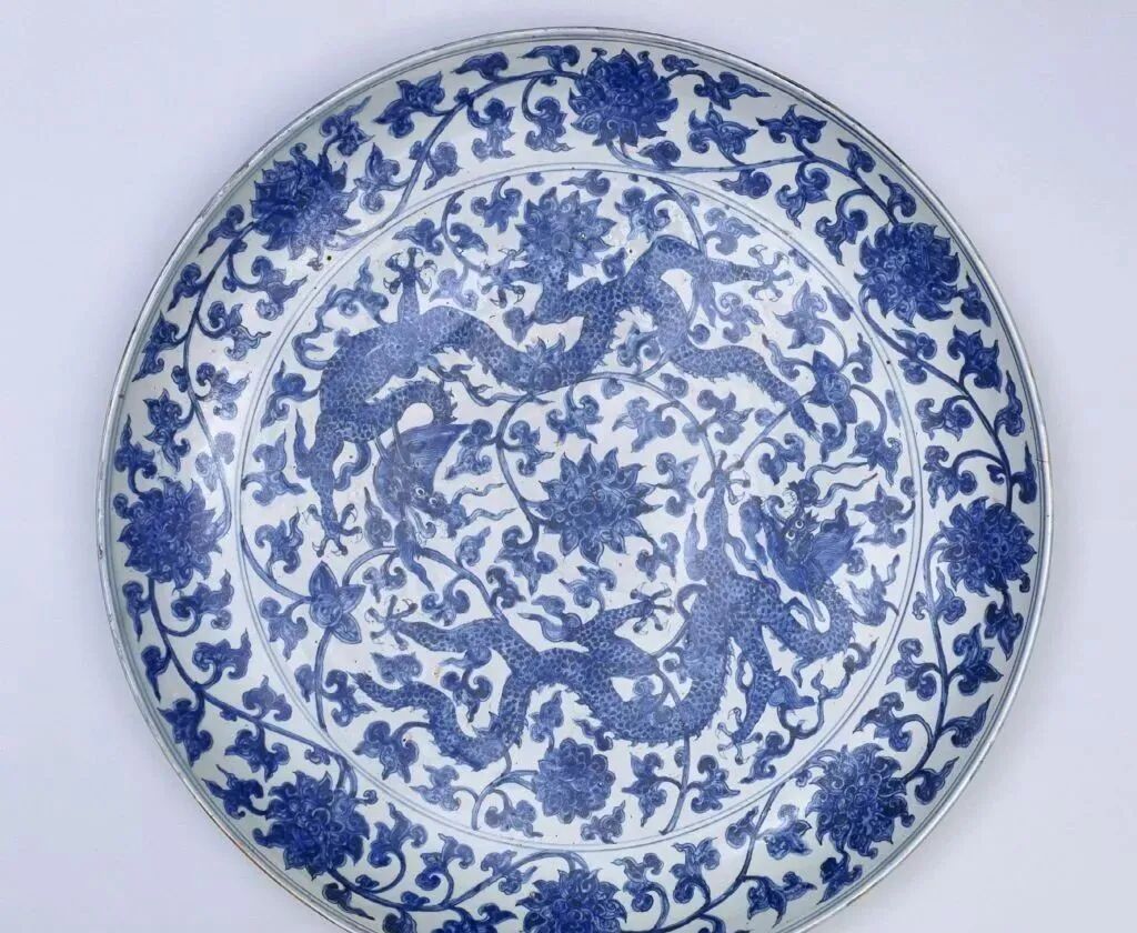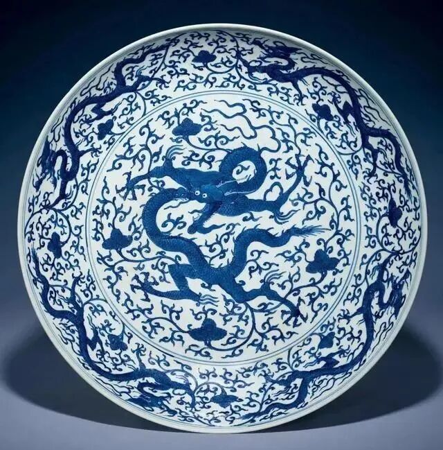 明嘉靖青花龙穿缠枝莲纹大盘