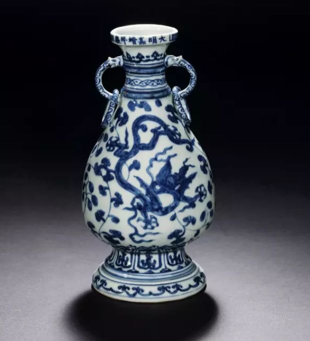 明嘉靖 青花翼龙纹双耳活环洗口瓶