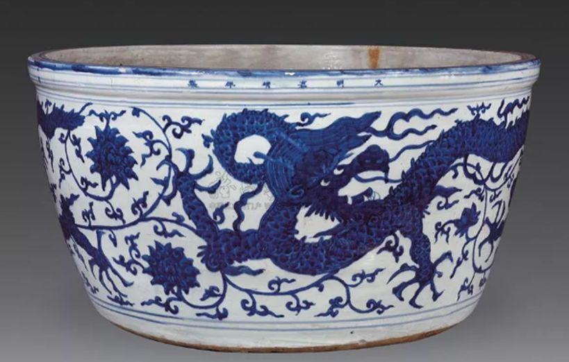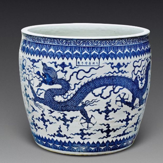 明嘉靖 青花大龙缸