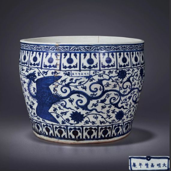 明嘉靖 青花大缸(残,有修)