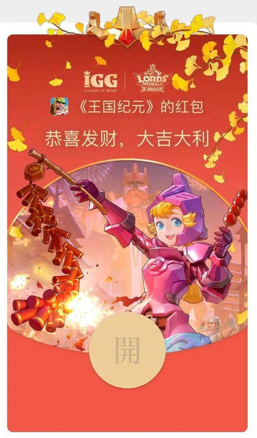 再来讲讲变化的部分:首先,最容易感知到的变化就是“表面功夫”。这不是说封面的原画更精美了,而是微信官方开放了异形红包封面的制作。这允许更多团队整点花式设计,比如网易《光·遇》、腾讯《天涯明月刀》和《乱世王者》、IGG《王国纪元》等多款产品。这些突破方形边框的元素,确实让人一眼看过去,就觉得年味儿溢出屏幕了。