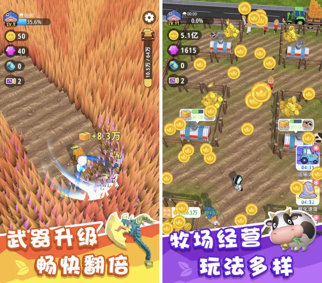 李斐然(DLgame):分享一下我们两款产品的数据吧。在限量测试阶段,去年上线的《我用神器撸大树》的eCPM接近700,大面积推广之后也维持在400左右;而今年上线的《割草的100种方式》,后台数据和大树差不多,玩家观看广告的次数也差不多,但iOS上的eCPM低了一半,一直在150-200之间浮动。多亏它加入了一些更复杂的模拟经营系统提升了长留,整体营收才没有太大的区别。