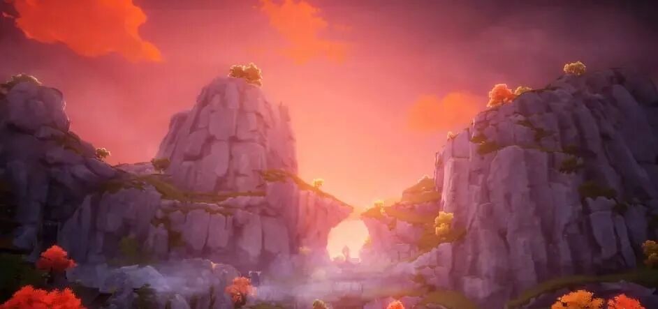 陶渊明的《桃花源记》中是这么描述的:林尽水源,便得一山,山有小口,仿佛若有光。便舍船,从口入。初极狭,才通人。复行数十步,豁然开朗。土地平旷,屋舍俨然,有良田美池桑竹之属。阡陌交通,鸡犬相闻。设计者巧妙地利用了地形和曲折的路径,将《桃花源记》中的场景体验感带到发现璃月港的过程中,前后对比,精心铺垫,最后满城繁华,尽收眼底!