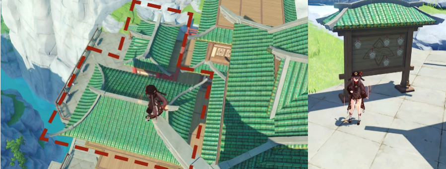 左:往生堂(庑殿顶) 右:璃月港告示牌(悬山顶)