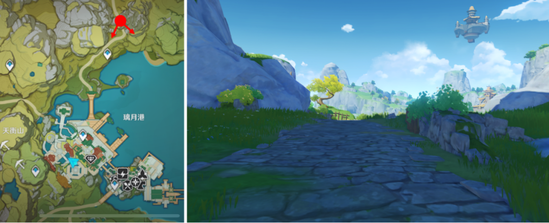 到达璃月港的主入口,需要经过北侧的要道,这条道路两侧夹山,悠远而深长,视线的尽头仿佛光亮,空无一物。走了几十步,突然变得开阔明亮了,能看见远处崖壁上的层层屋檐,好一个犹抱琵琶半遮面。顺着道路向右拐弯又走了段距离,终于,千呼万唤始出来,一座完整的东方古城尽收眼底,广阔的大海、忙碌的商船、鳞次栉比的房屋、热闹的街道,好一番国风盛景!
